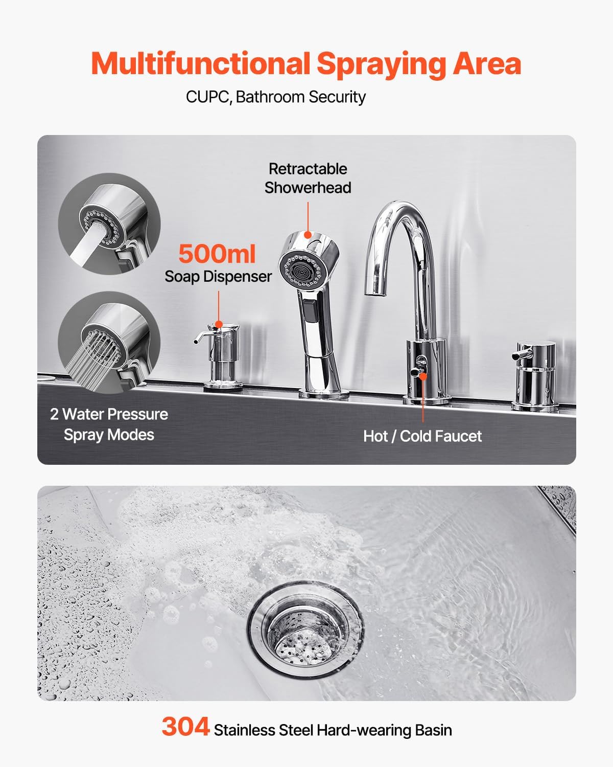 - More Comfortable Grooming: The dog grooming tub's faucet is featuring CUPC and bathroom security certification, the hot and cold dual-control faucets and gentle/strong dual water pressure showerhead provide versatility. The 500 ml large-capacity soap dispenser ensures long-lasting use with each refill. The 304 stainless steel tub body is scratching-resistant and corrosion-proof