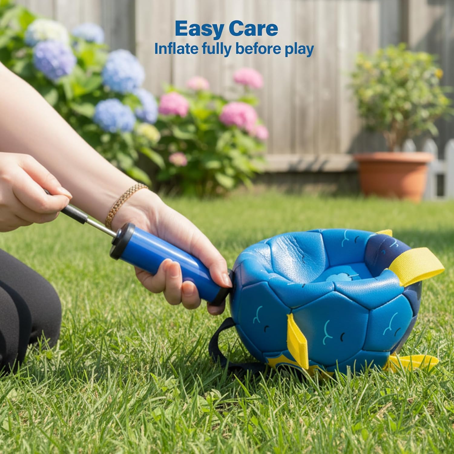 - Versatile Floating Design – Unique dog soccer ball with straps inspired by jolly pets soccer ball. This floating dog ball works on land and in water. Use as a dog ball with tags for pool games, lake play, or backyard fetch.