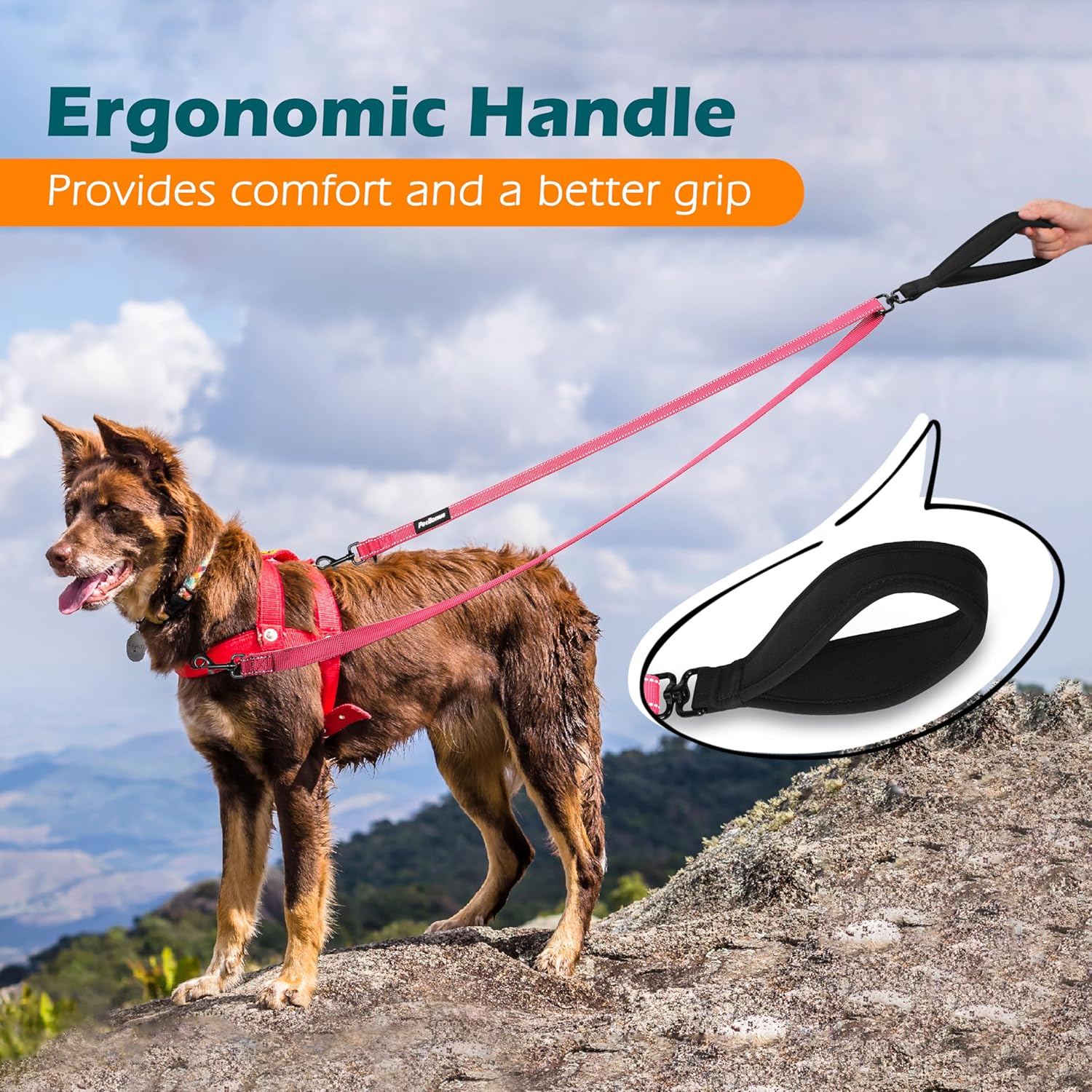 PetBonus Two Point Control Dog Leash, Works with No Pull Harnesses, No Tangle Training Leashes, Soft Padded and Reflective Walking Lead, Converts to Single Lead for Medium Large Dogs (Pink)