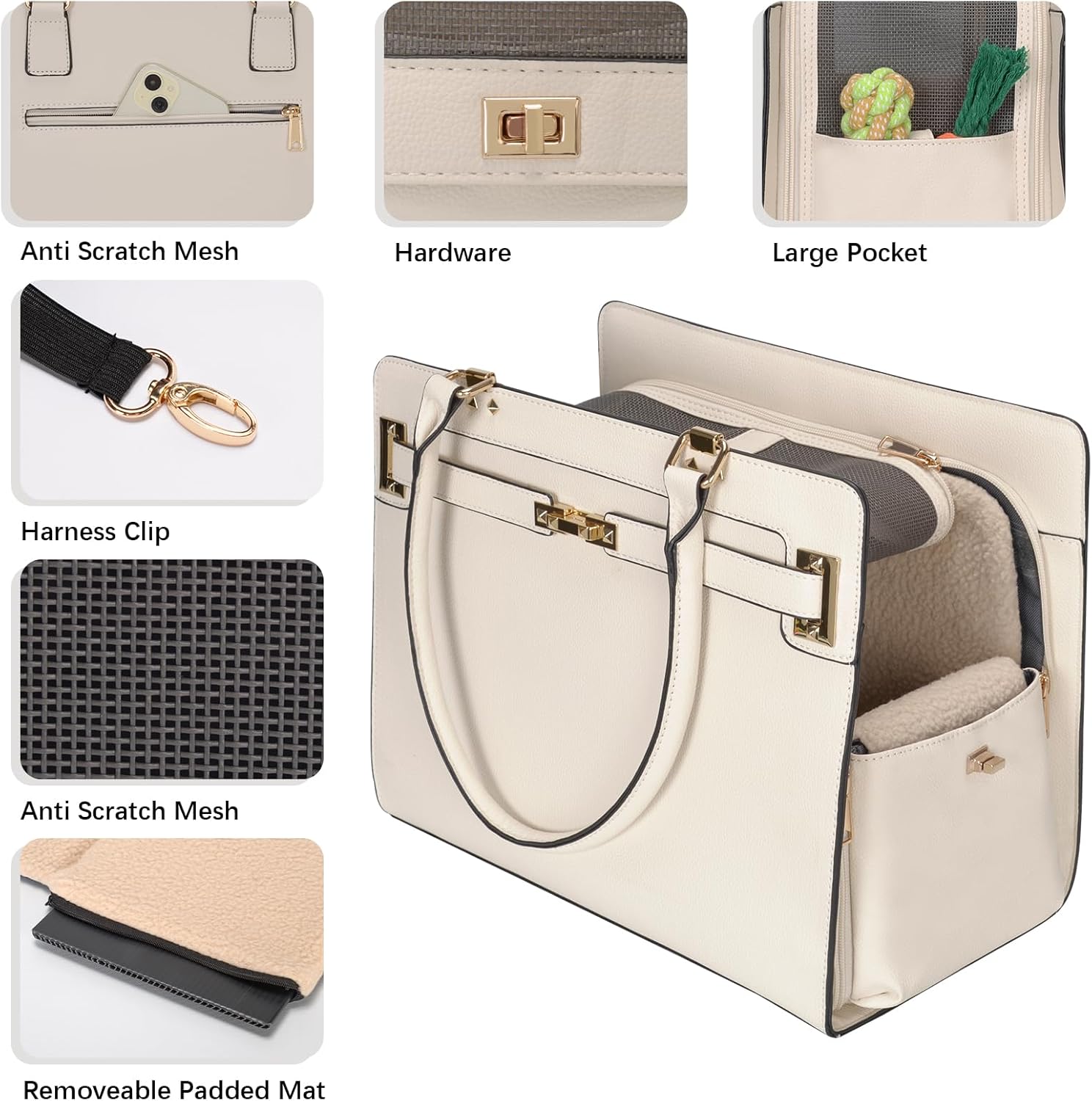 2-in-1 Stylish Dog Purse Carrier Soft-Sided Carriers Travel Tote Bag for Small Dogs Cats, Fashion Foldable Pet Bag for Puppies Small Animals with Pockets (White, 15" L x 7.5" W x 12.2" H)