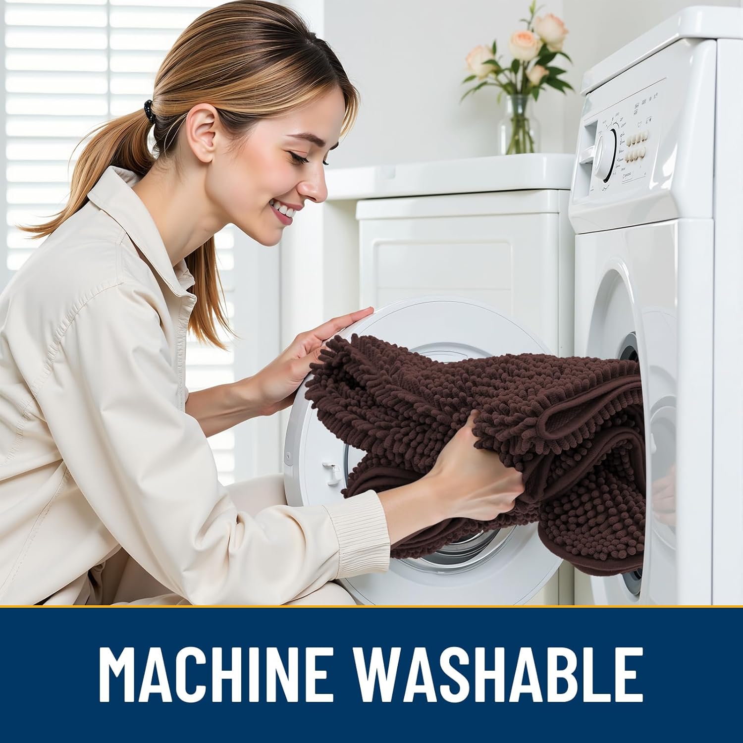 Smiry Dog Door Mat for Muddy Paws 47x24, Absorbs Moisture and Dirt Doormat, Non-Slip Washable Quick Dry Chenille Front Door Mat Indoor Entrance, Entryway Carpet for Inside Floor, Brown