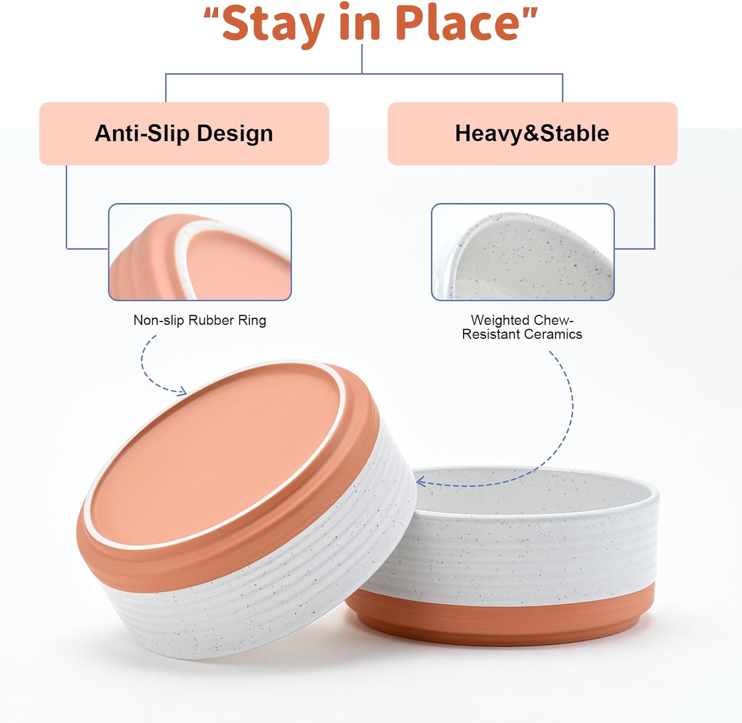 - Heavyweight, Chew‑Resistant Ceramic – Thick and Durable ceramic delivers the heft needed to prevent dragging, tipping, and the clanging noise common like other stainless bowls, while the smooth, lead‑free glaze discourages chewing and stands up to daily use