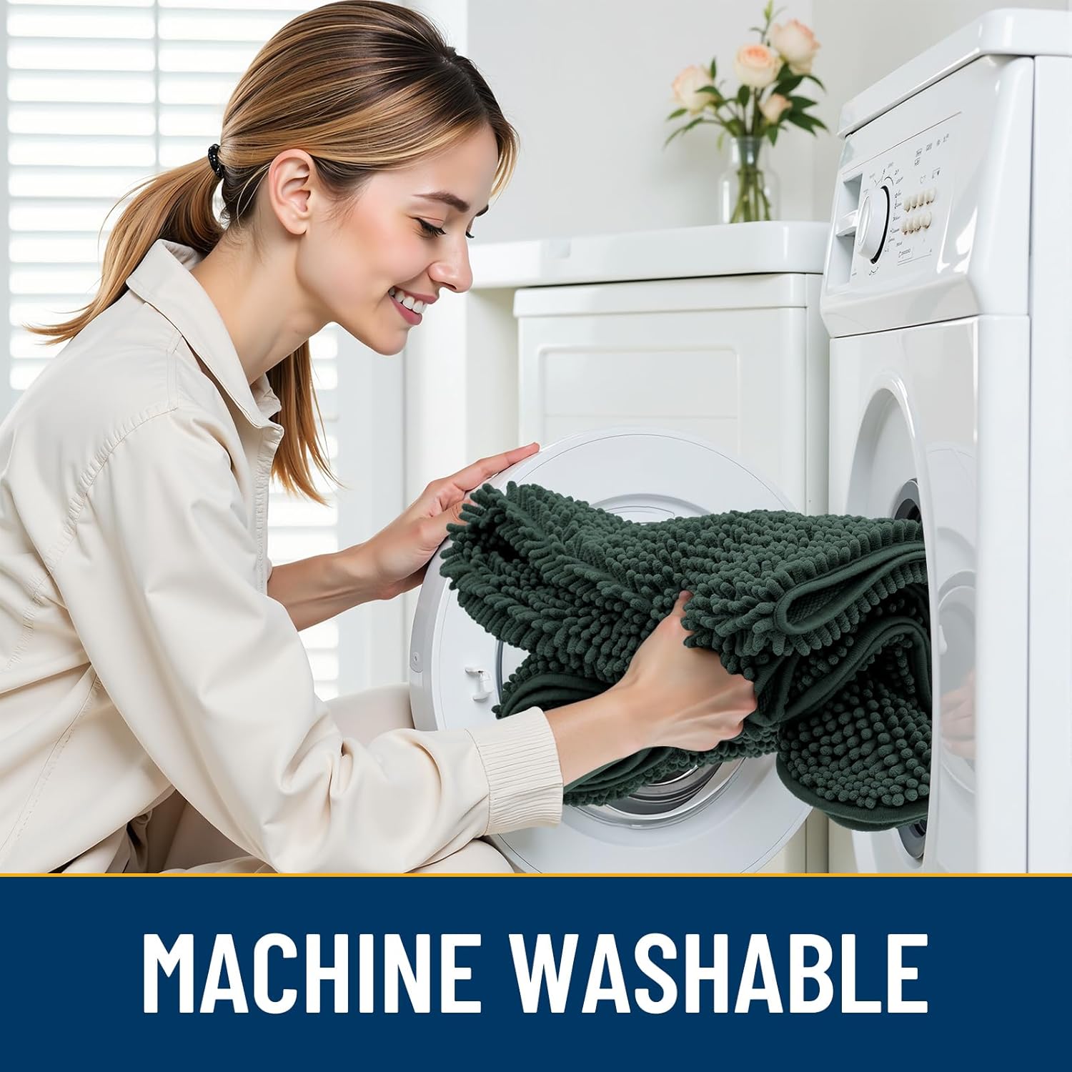 Smiry Dog Door Mat for Muddy Paws 40x32, Absorbs Moisture and Dirt Doormat, Non-Slip Washable Quick Dry Chenille Front Door Mat Indoor Entrance, Entryway Carpet for Inside Floor, Green