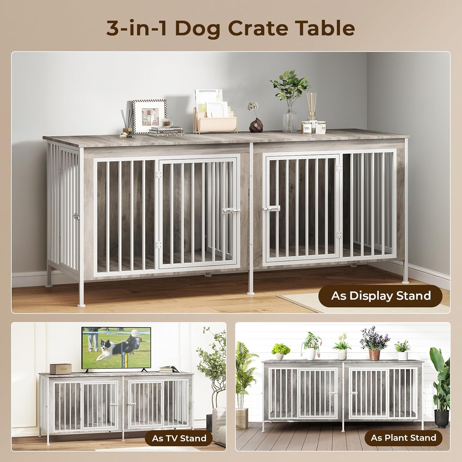- Spacious Room for Two Dogs: With overall dimensions of 78.74" W x 27.55" D x 33.46" H, this extra large dog crate provides a roomy and comfortable resting space for two medium or large-sized dogs. The removable middle divider allows flexible use—either keep dogs separately or give them one big shared space