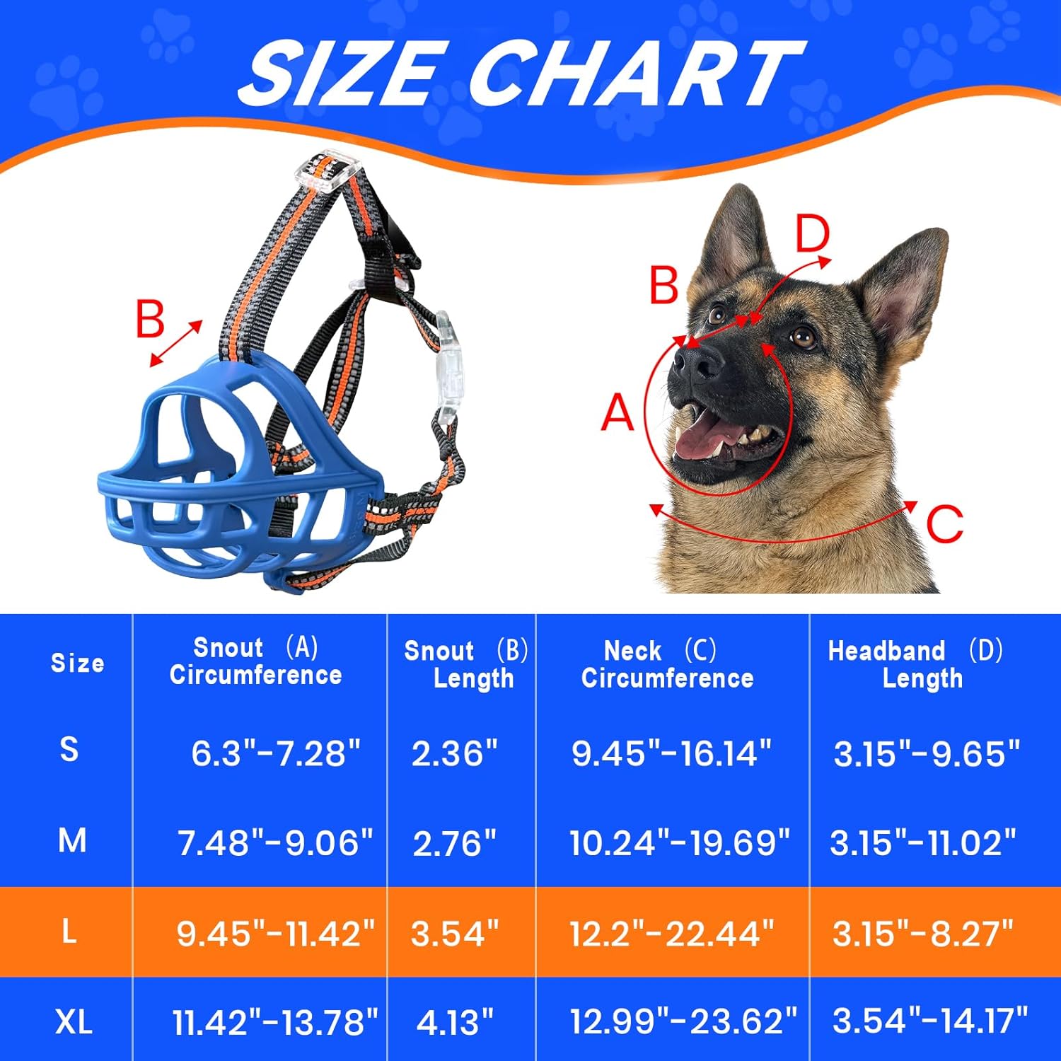- PLEASE MEASURE BEFORE BUYING:Measure both snout circumference and snout length before purchasing. If your dog's snout length exceeds the size range by about 1 inch, choose the next size up. For long-snout breeds like Dobermans, make sure the snout length fits as well.