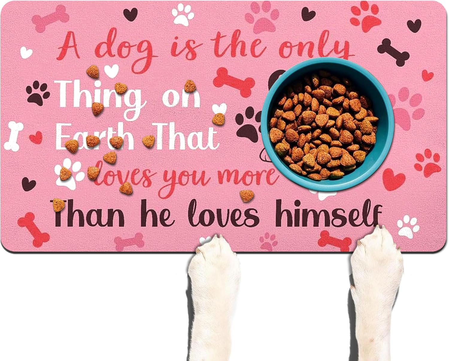 - Dog Food Mat & Cat Food Mat - Our premium pet food mat provides the perfect solution for messy drinkers/eaters! This extra-large pet feeding mat catches all spills from dog bowl mat and water dishes, keeping your floors spotless.