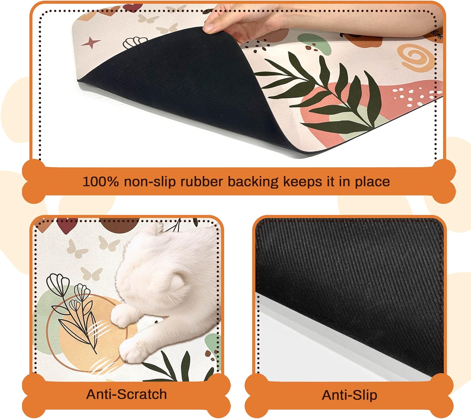- Super Safe Non-Slip Rubber Mat for Dog Bowls - Our dog feeding mat features a special non-slip rubber backing that keeps the dog bowl mat firmly in place, even with energetic pets! The pet food mat won't bunch or slide during use. Perfect as pet mats for food and water in kitchens or feeding areas.