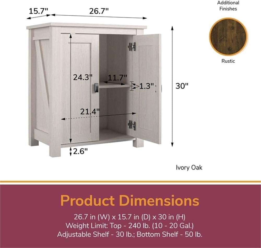 - Assembled dimensions: 30βH x 26.7βW x 15.67βD