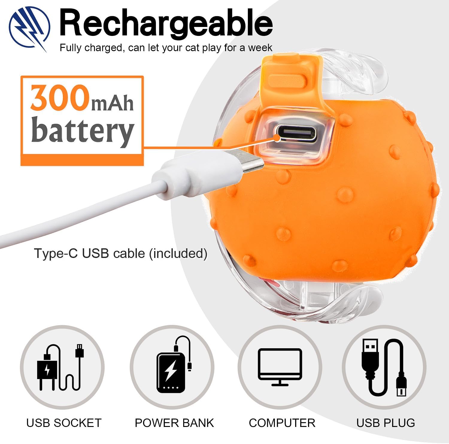 - Bird Chirping & Interesting Tail for Hunting - This automatic cat ball has realistic bird sounds, which can attract cats to be interested in this bird chirping cat toy and trigger their hunting instincts. The elastic tail accessory moves rapidly along with the ball, making your cat think it is an agile mouse and go crazy for it. Perfect hunting toy for cat. In the package, we have included two different tail accessories for your convenience of replacement.