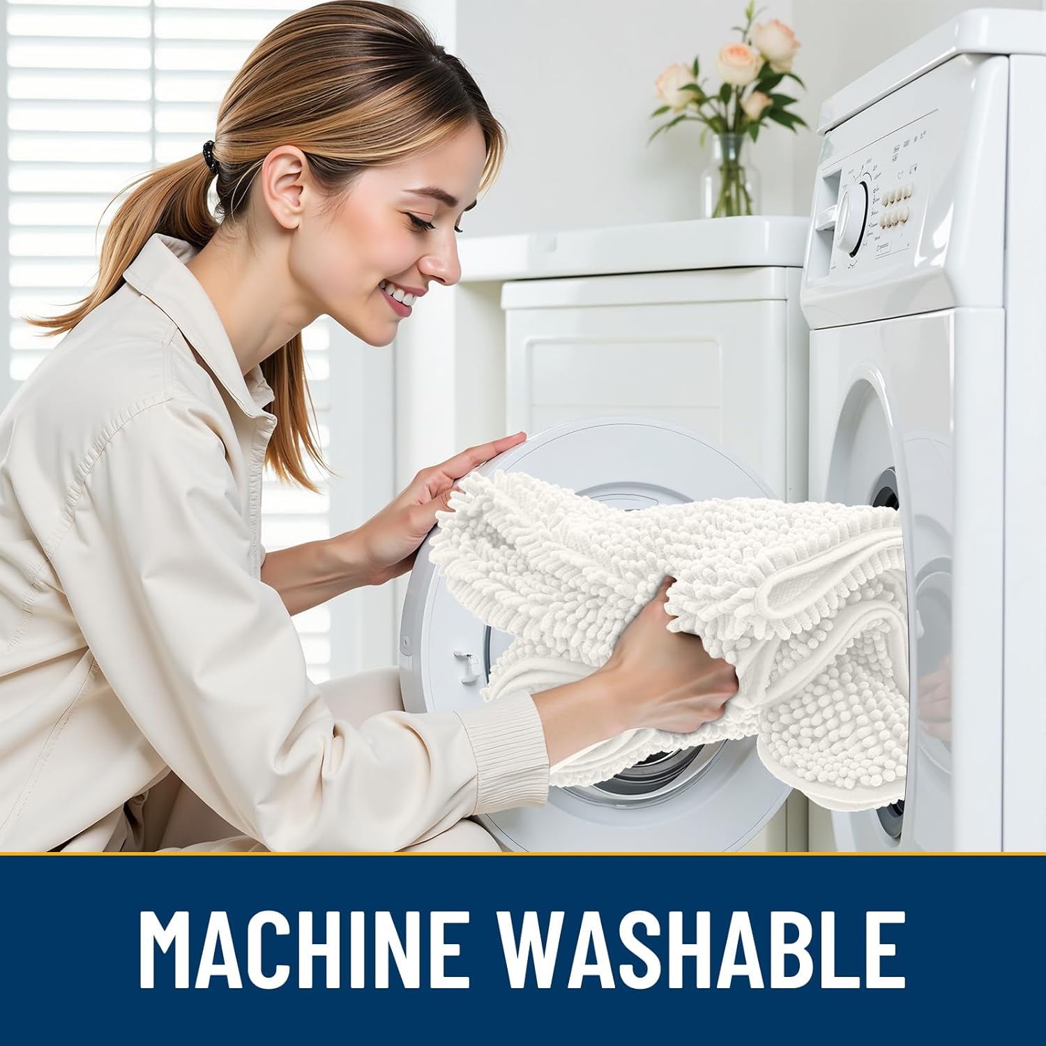 Smiry Dog Door Mat for Muddy Paws 36x24, Absorbs Moisture and Dirt Doormat, Non-Slip Washable Quick Dry Chenille Front Door Mat Indoor Entrance, Entryway Carpet for Inside Floor, Ivory