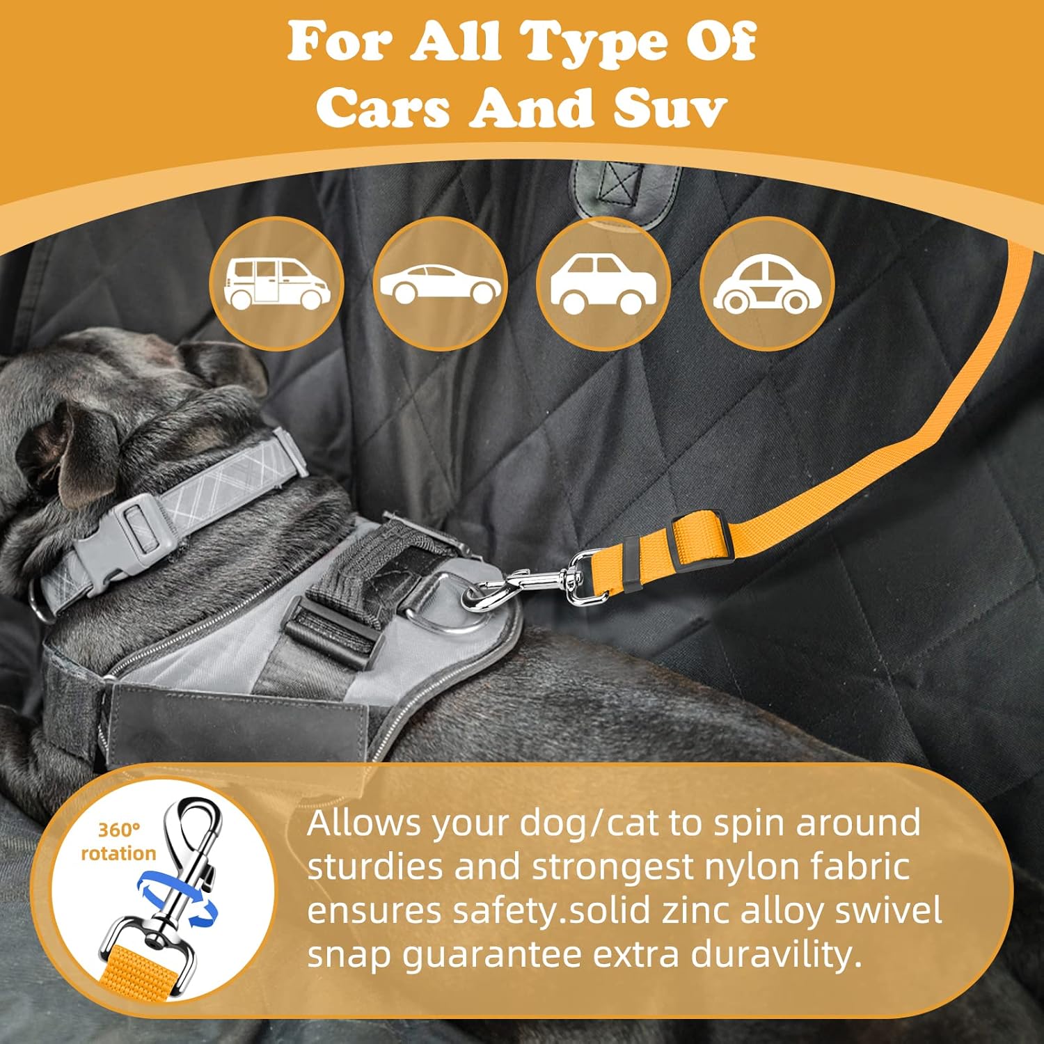 - HIGH QUALITY: Made of high quality nylon fabric to ensure safety, features the solid zinc alloy swivel snap,elastic bungee and quality buckles, The reflective stitching design makes it great for night time use. The elastic bungee helps dog prevent jerking with sudden movement. the pet car seat belt ensures the most safest traveling for your pet, and provides a most relaxing driving experience for you.
