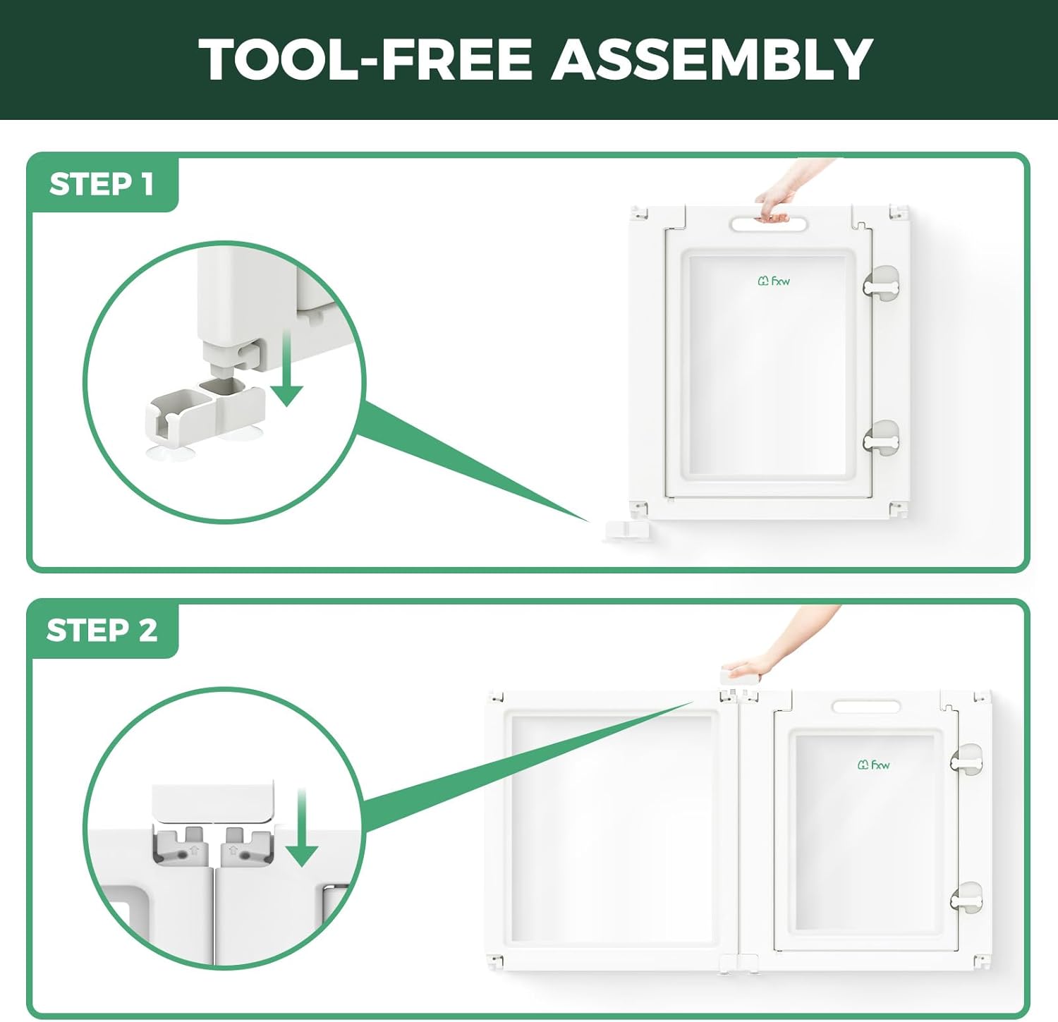 - Tool-Free, Customizable Assembly: No tools required—simply snap the panels together to create the perfect play area or barrier, with flexibility to adapt to any space.