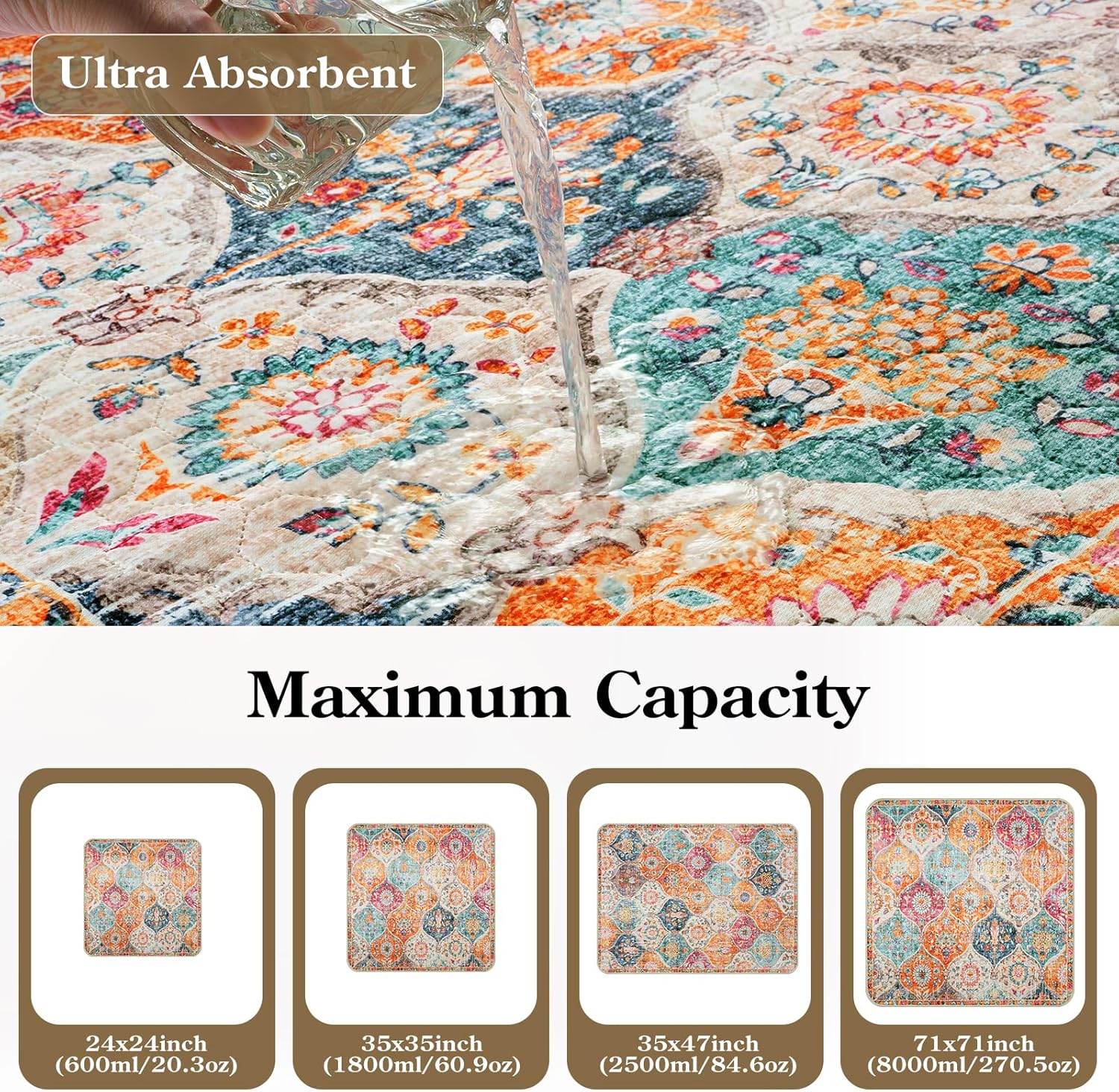 - 4-Layer Protection System: Made of four specialized layers for maximum performance, soft absorbent top layer, quick-drying middle layer, waterproof barrier layer, and non-slip bottom layer. This comprehensive protection system ensures liquids stay contained while the pad remains secure on your floor