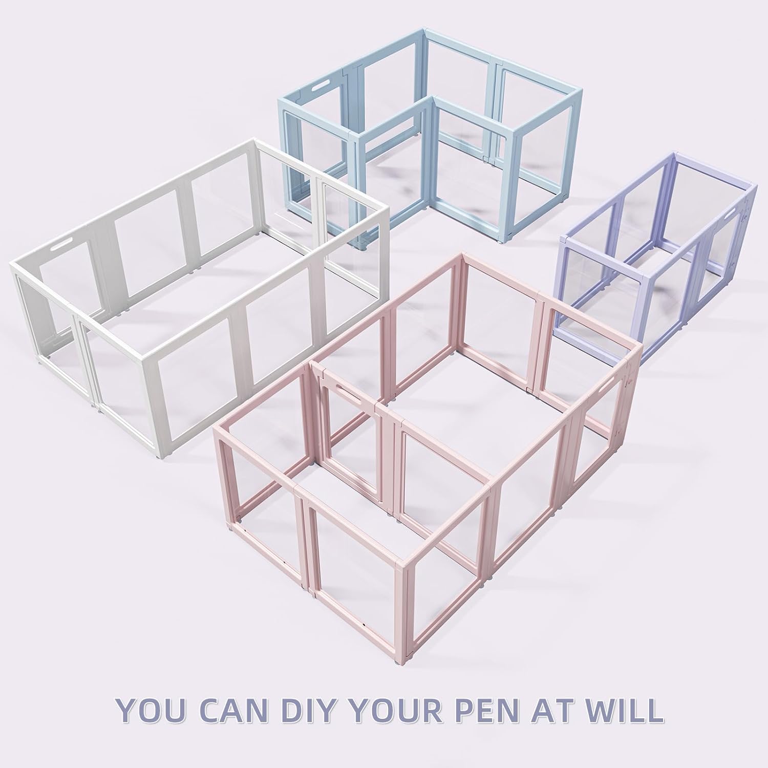 DIY Clear Acrylic Dog Playpen House,Quick Easy Assembly and Disassembly,Strong Floor Suction,Indoor and Outdoor Use,Easy Cleansing Puppy Fence (Sky Blue, 30.3" H, 8PCS)