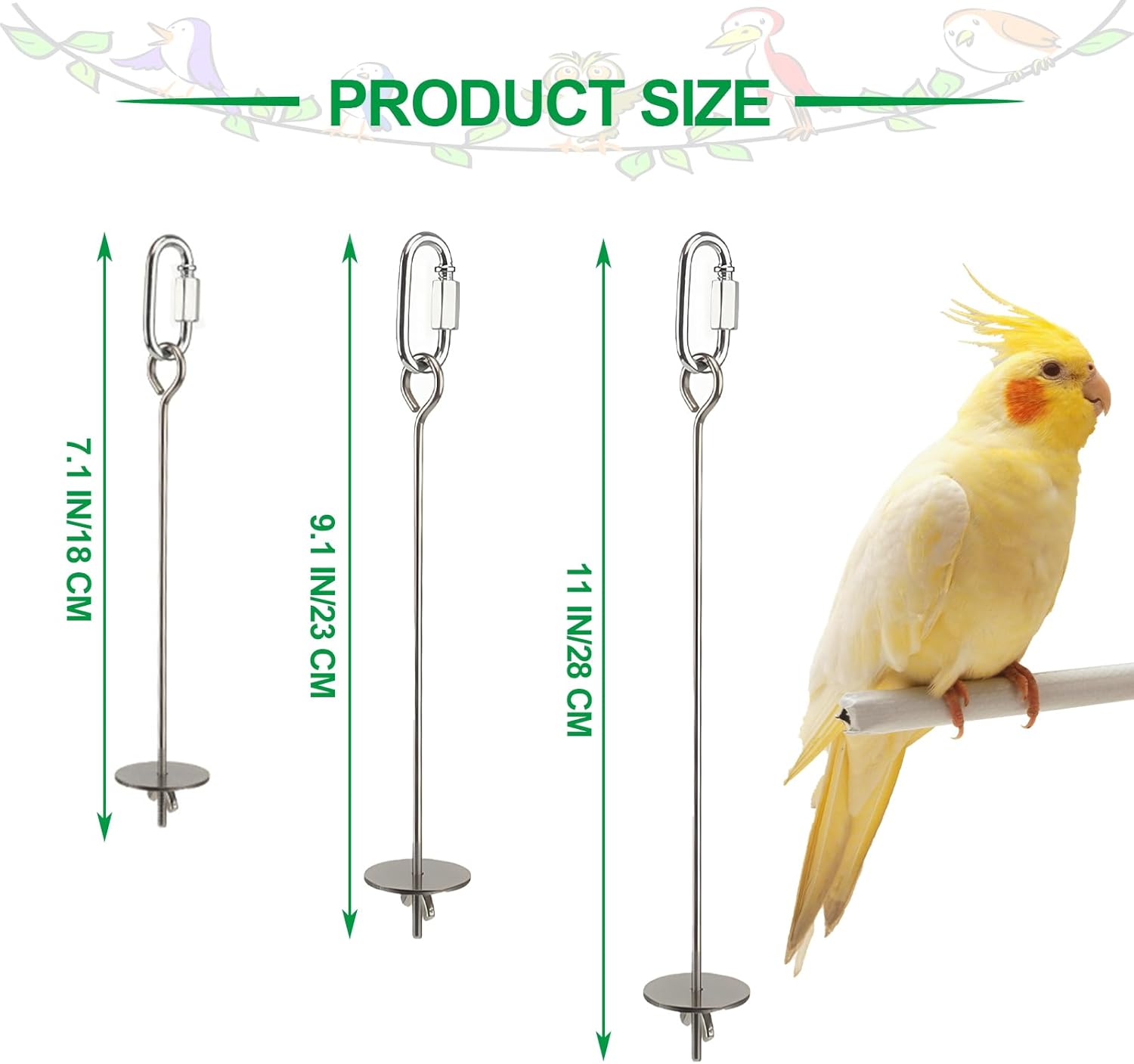 - Three Sizes Available β Choose from 6.9in/17.5cm, 8.9in/22.5cm, or 10.8in/27.5cm to suit cages of any size. Suitable for parrots, hamsters, chinchillas, and more.