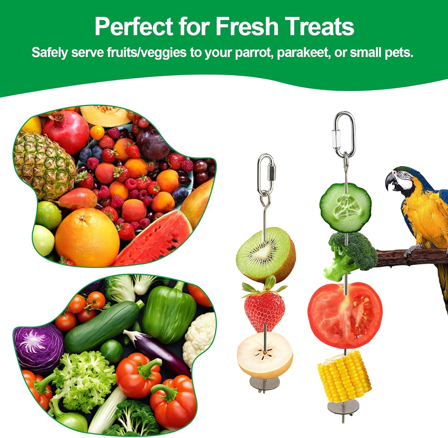 - Bird-Safe & Durable β Made from food-grade stainless steel, this skewer is rust-resistant and safe for birds and small animals.