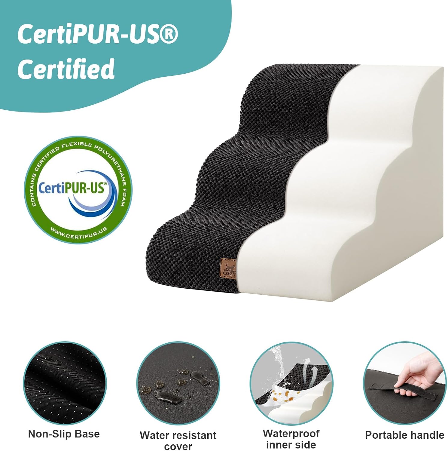 - LEAKPROOF & EASY TO USE: The climbing surface of the dog stairs is made of leak-proof material, so you donโt have to worry about your dog peeing on the stairs. The bottom is made of non-slip nylon to minimize the movement of the stairs. The two sides of the stairs are made of wear-resistant cotton and linen for dogs to sharpen their claws, and there is a convenient handle at the back for easy carrying