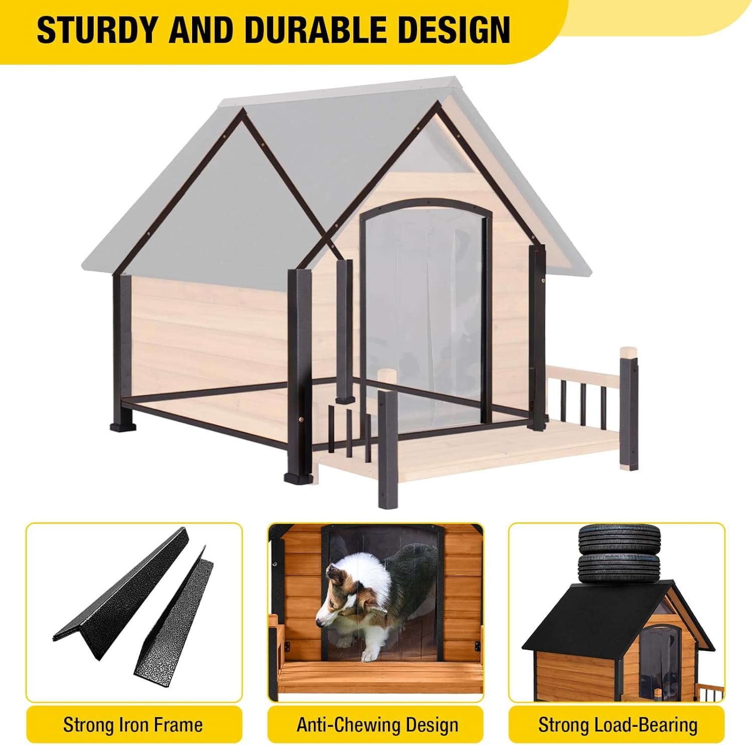 - Weatherproof Structural: Our dog house has an airtight protective design and a sloped waterproof roof to prevent dirty water from flowing into the house, protecting your pet from dirt, rain, and snow and keeping the cabin comfortable and dry