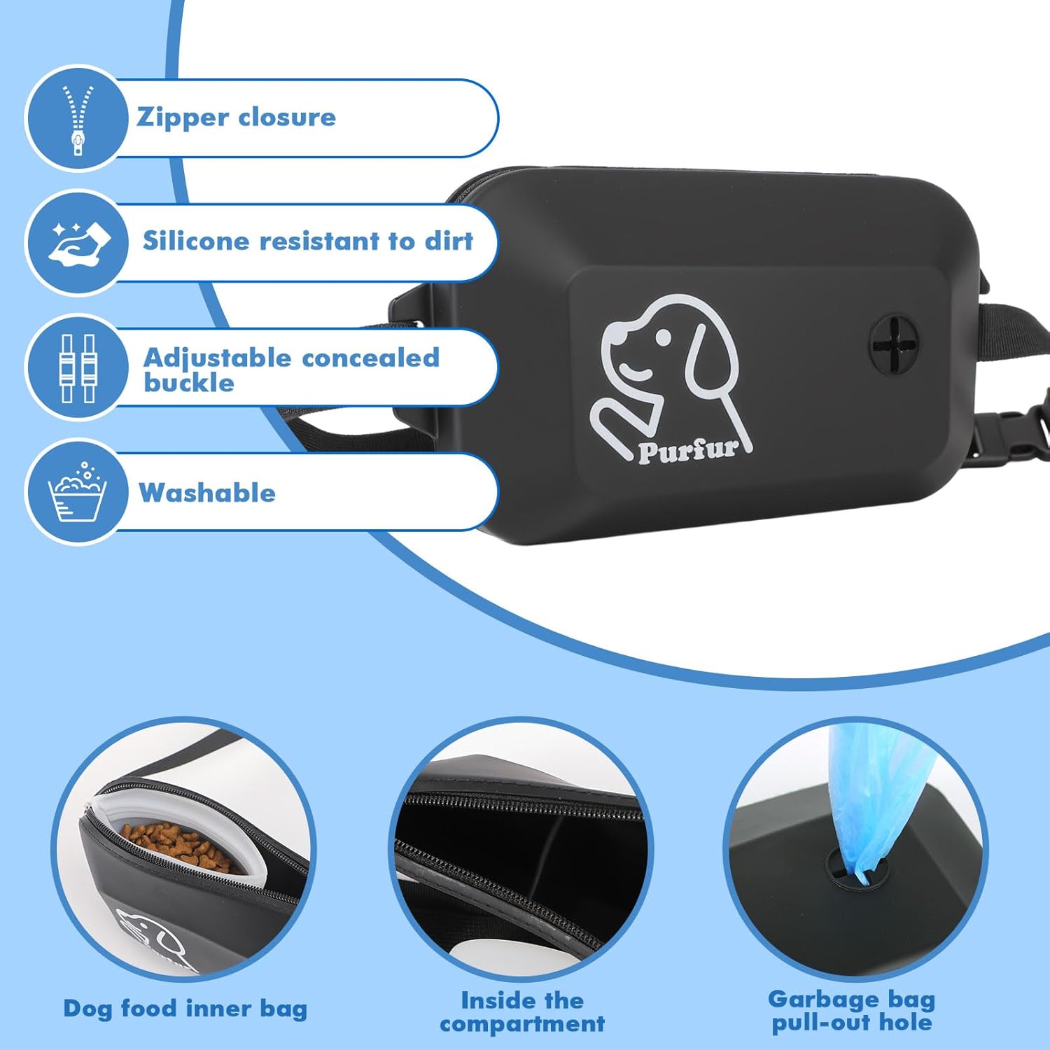 Dog Treat Pouch with Clicker & Poop Bag Holder – Waterproof Silicone, Adjustable Waist Belt for Training & Walking – Puppy Treat Pouch for Pet Training (Black)