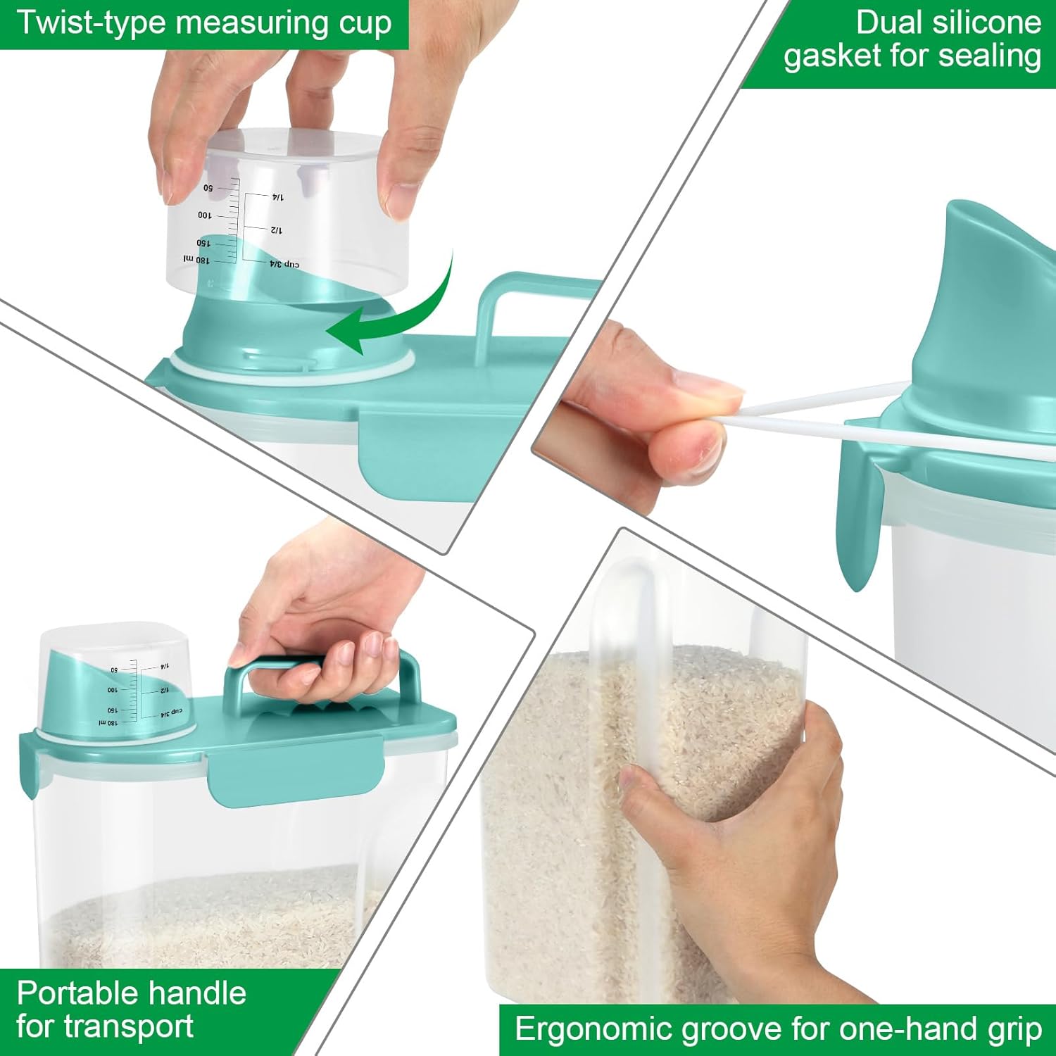 Rice Storage Container 10 Lbs, Pet Cat Dog Food Storage Container with Larger Spout and Cup, Airtight Cereal Containers Storage Food Cereal Dispenser, Kitchen and Pantry Organization Bin-Green