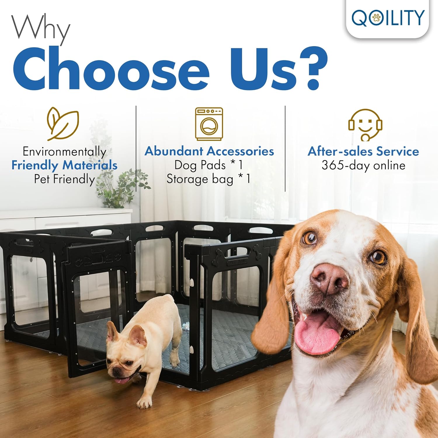 Clear Playpen for Dogs Indoor, Effectively Relieves Indoor Pet Anxiety, 56" x 37" x 23.6"H, Suitable for Dogs and Puppies, Black