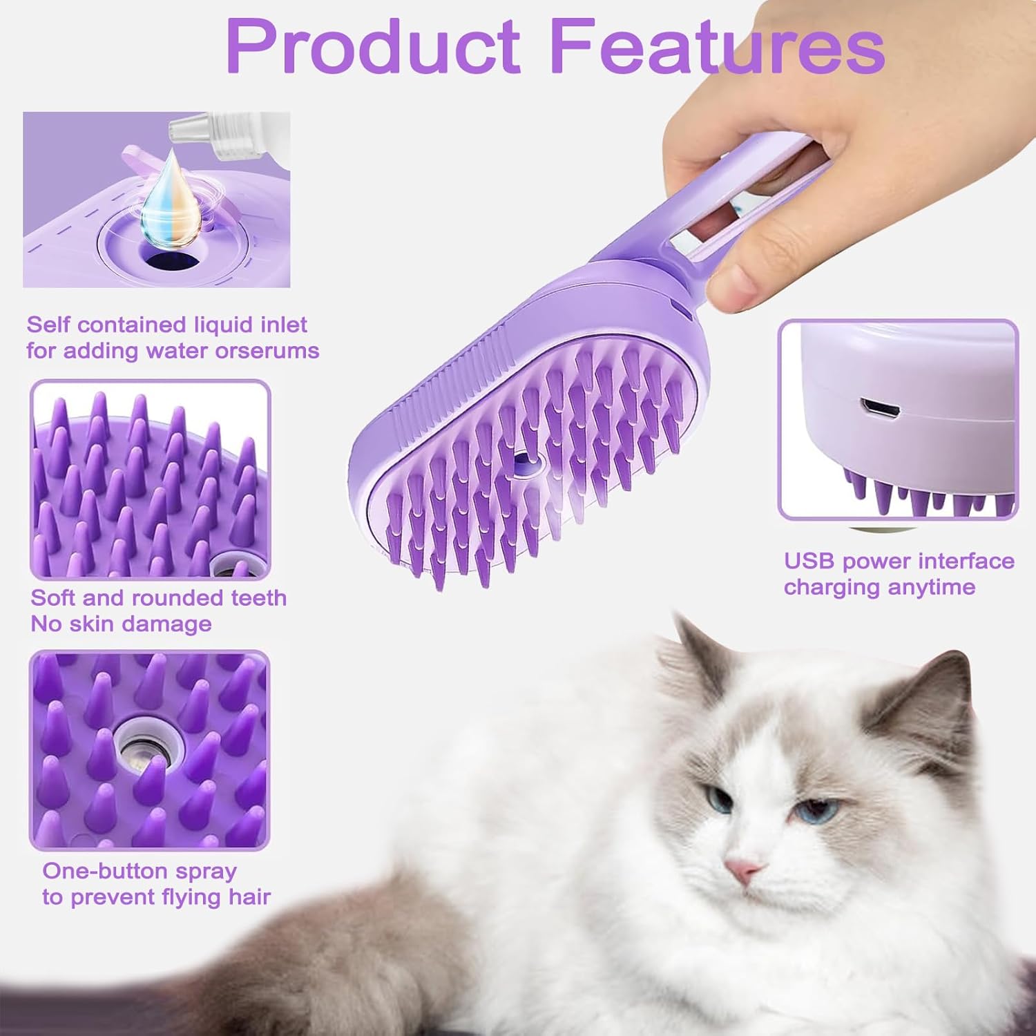Cat Steam Brush for Shedding, 2025 New 4 in 1 Rechargeable Steam Pet Brushes for Cats & Dogs, Indoor Anti-static Pets Brush for Massage, Cleaning, Shedding & Combing Hair (Purple)