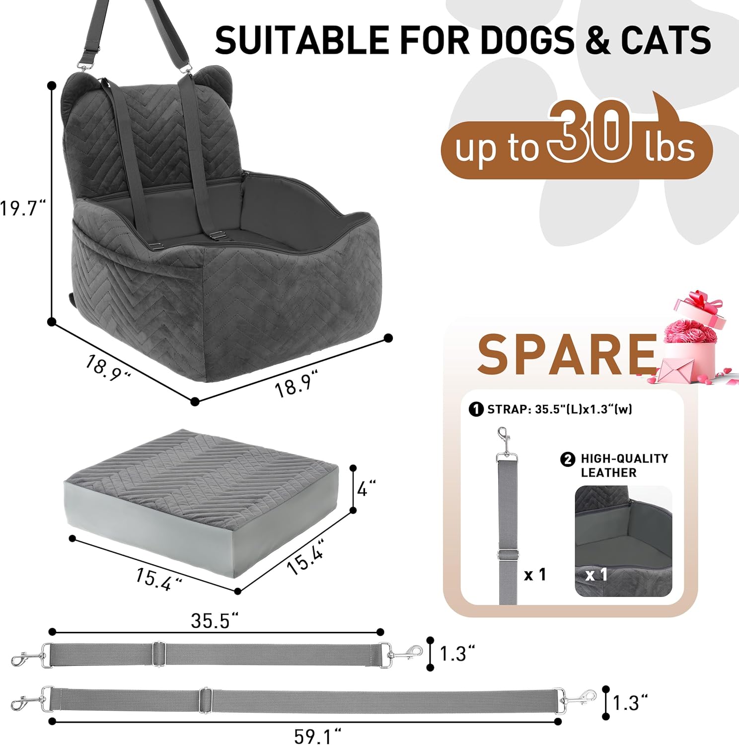 - Ideal for Small & Medium Dogs: This durable pet car seat (18.9"L x 18.9"W x 19.7"H) fits small to medium dogs up to 30 lbs, functioning perfectly as both a secure car seat and a dog bed at home or while camping