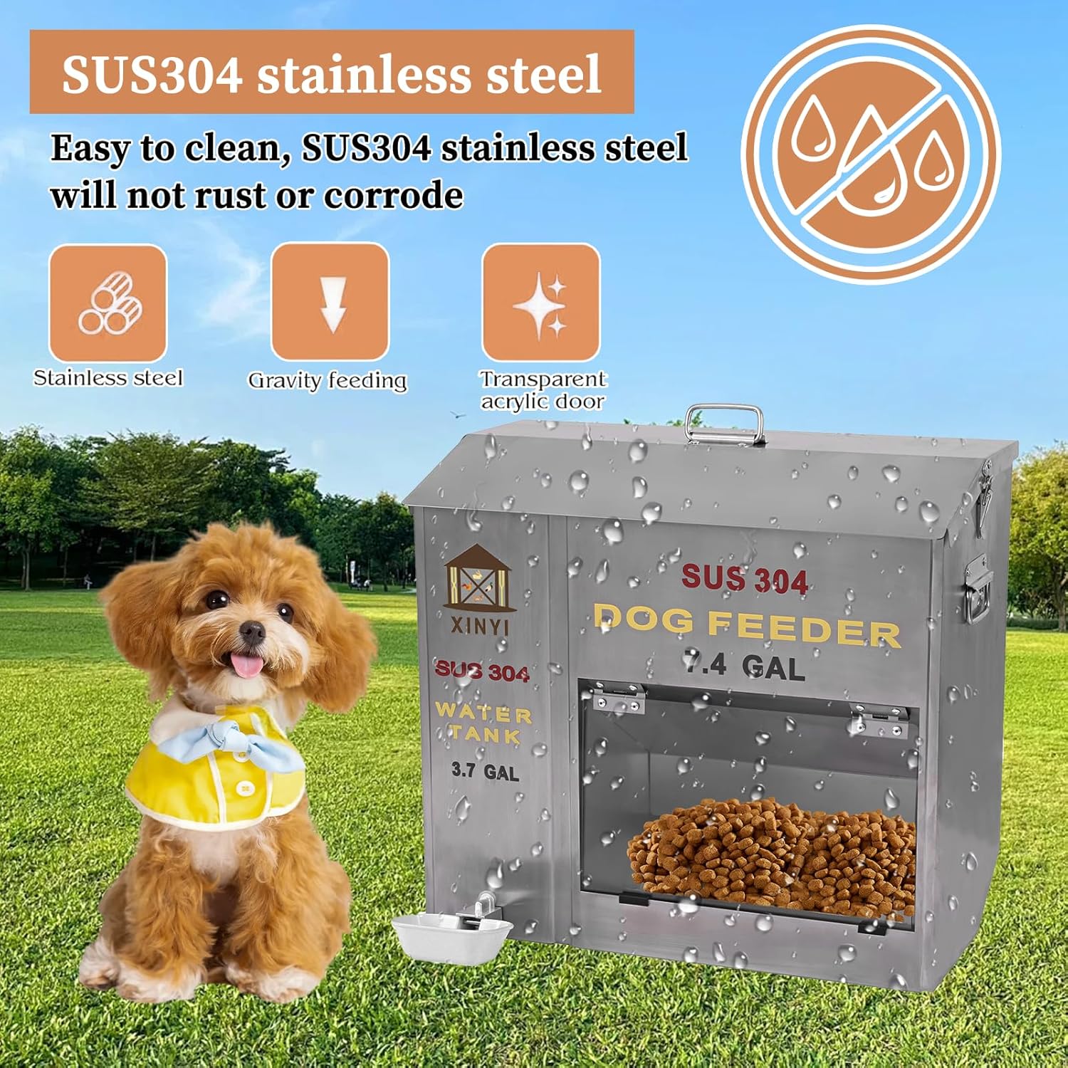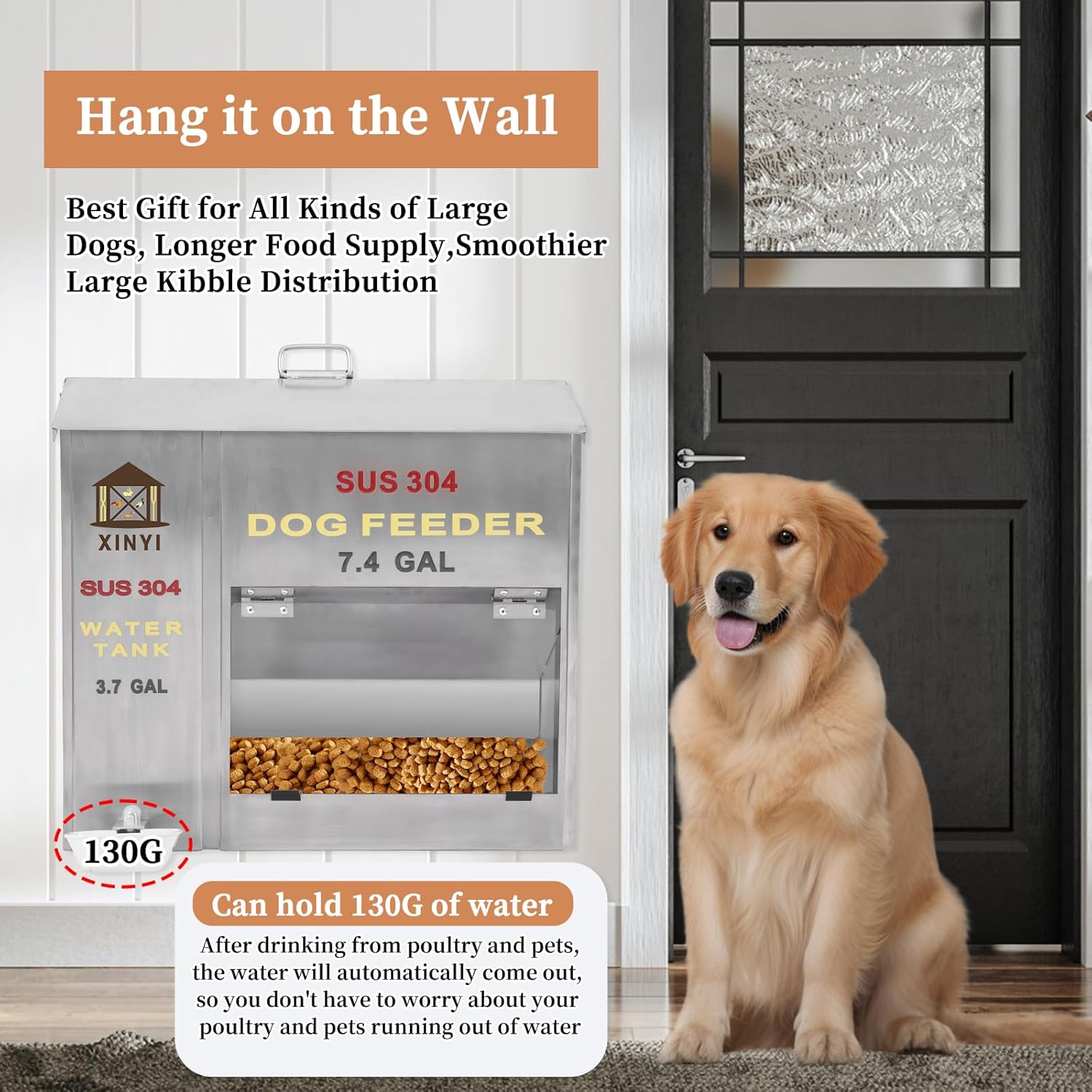 XINYI Automatic Dog Feeder and Waterer 2-in-1,SU304 Stainless Steels 3.7 Gallon Water Tank with 1 Aluminum Alloy Water Cup, 7.4 Gallon Dog Food Dispenser,Automatic Feeder for Pets, Breed, Cat