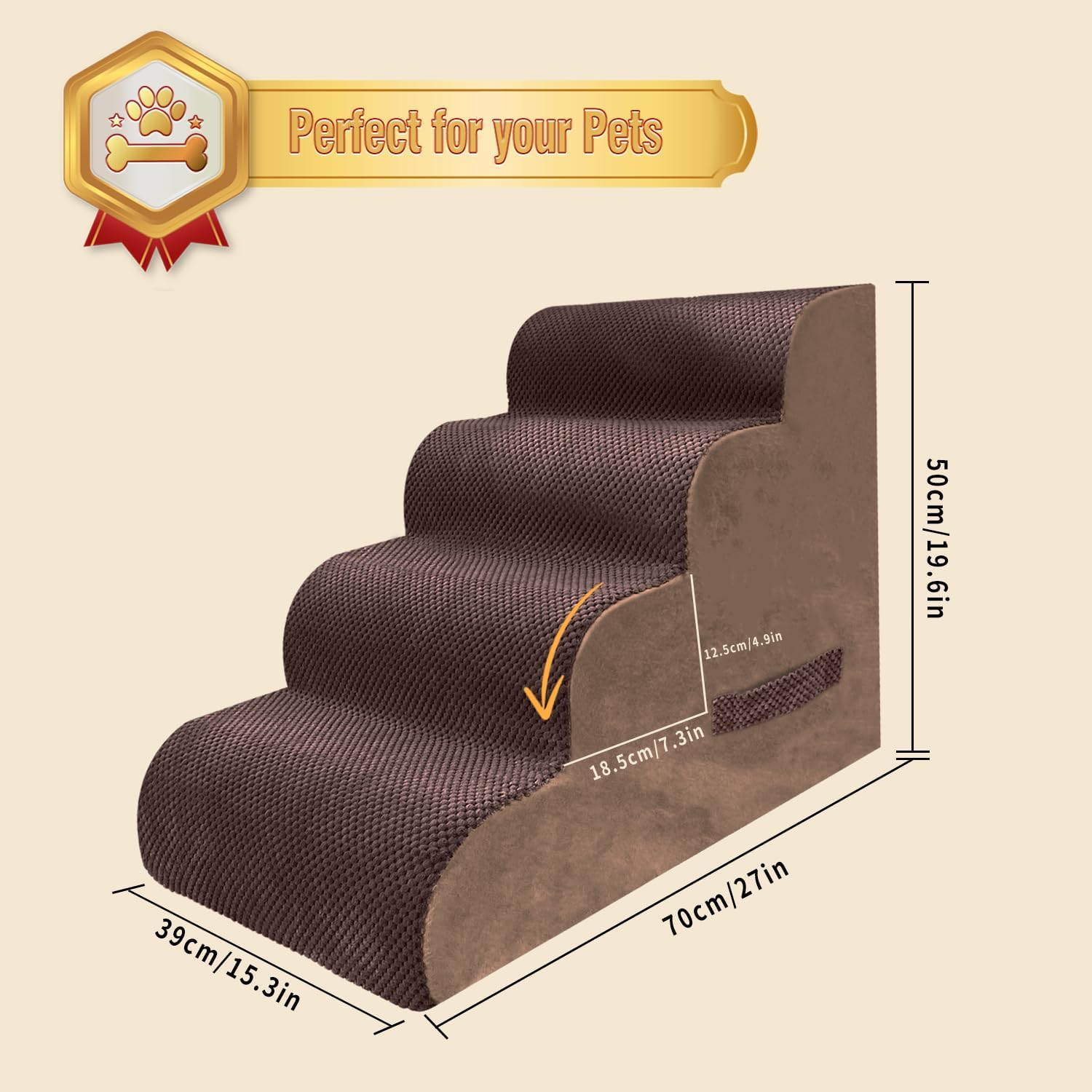 PAWSCART Dog Stairs for Small Dogs and Cats, 4-Step Dog Steps for Bed, 19.6" H Pet Stairs for High Bed, Pet Ramp for Couch, Sofa, Non-Slip Surface Removable Washable Cover, Brown