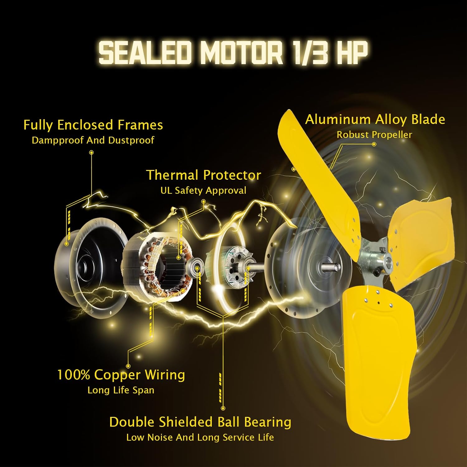 - ăMoves Much Airă: Built with 1/3HP Premium TEAO Enclosed Motor and Shielded Ball Bearings, this heavy duty industrial wall fan provides circulating breeze for large spaces, blowing distance reach 60 feet. It is ideal for Warehouse, Workshop, Factory, Garage, Basement, Greenhouse, Barn, Industrial, Commercial and Residential areas. High speed 9100 CFM / Low speed 7300 CFM