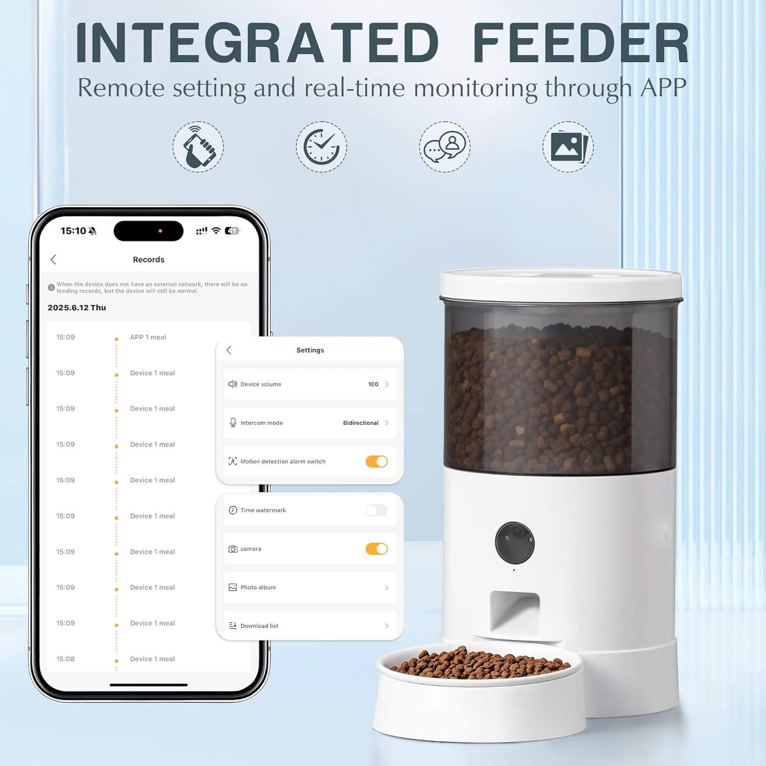 - Real-Time Visual Monitoring:Equipped with a high-resolution camera and two-way audio, watch your cat eat, interact with them remotely, and check on their well-being anytime. Stay connected with your furry friend no matter where you are.