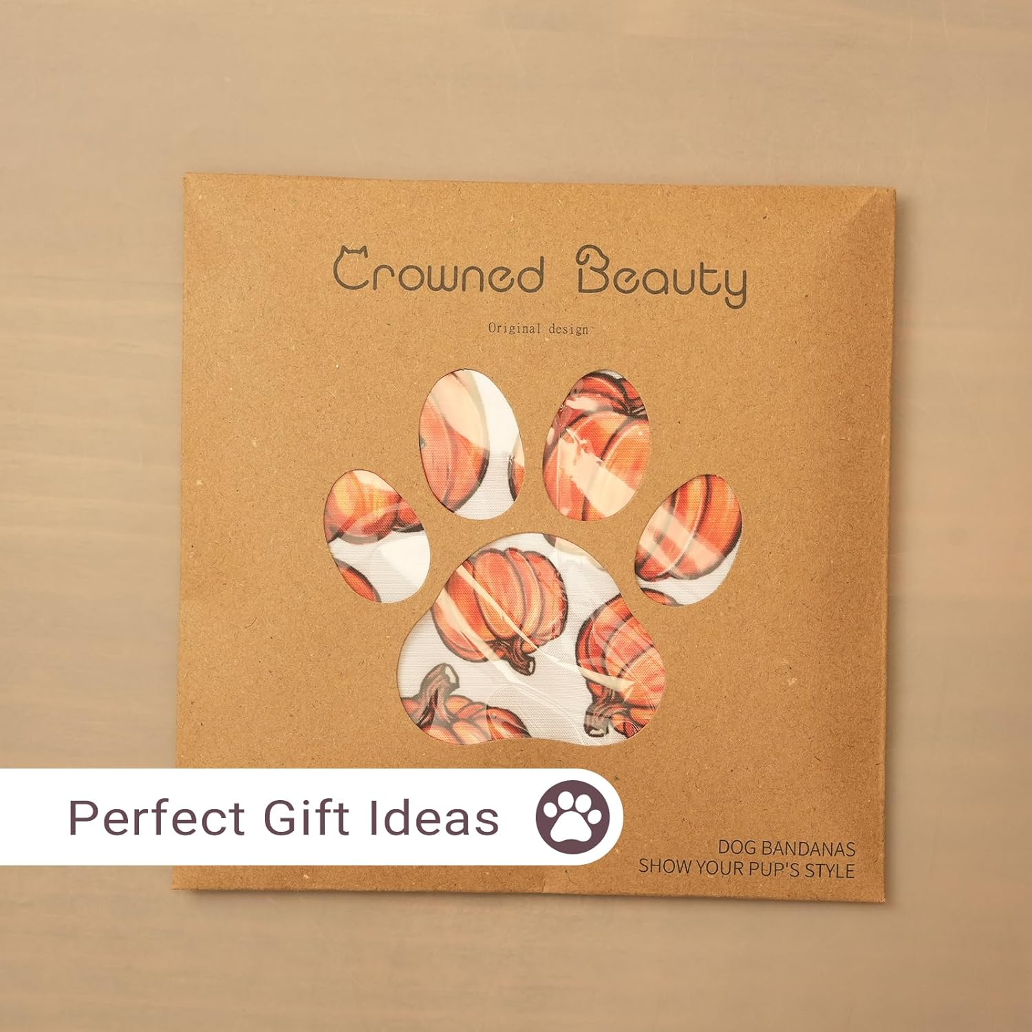 CROWNED BEAUTY Fall Dog Bandanas Reversible Large 2 Pack, Fall Pumpkin Set, Orange Adjustable Triangle Holiday Scarves for Medium Large Extra Large Dogs Boy Girl Pets DB187-L