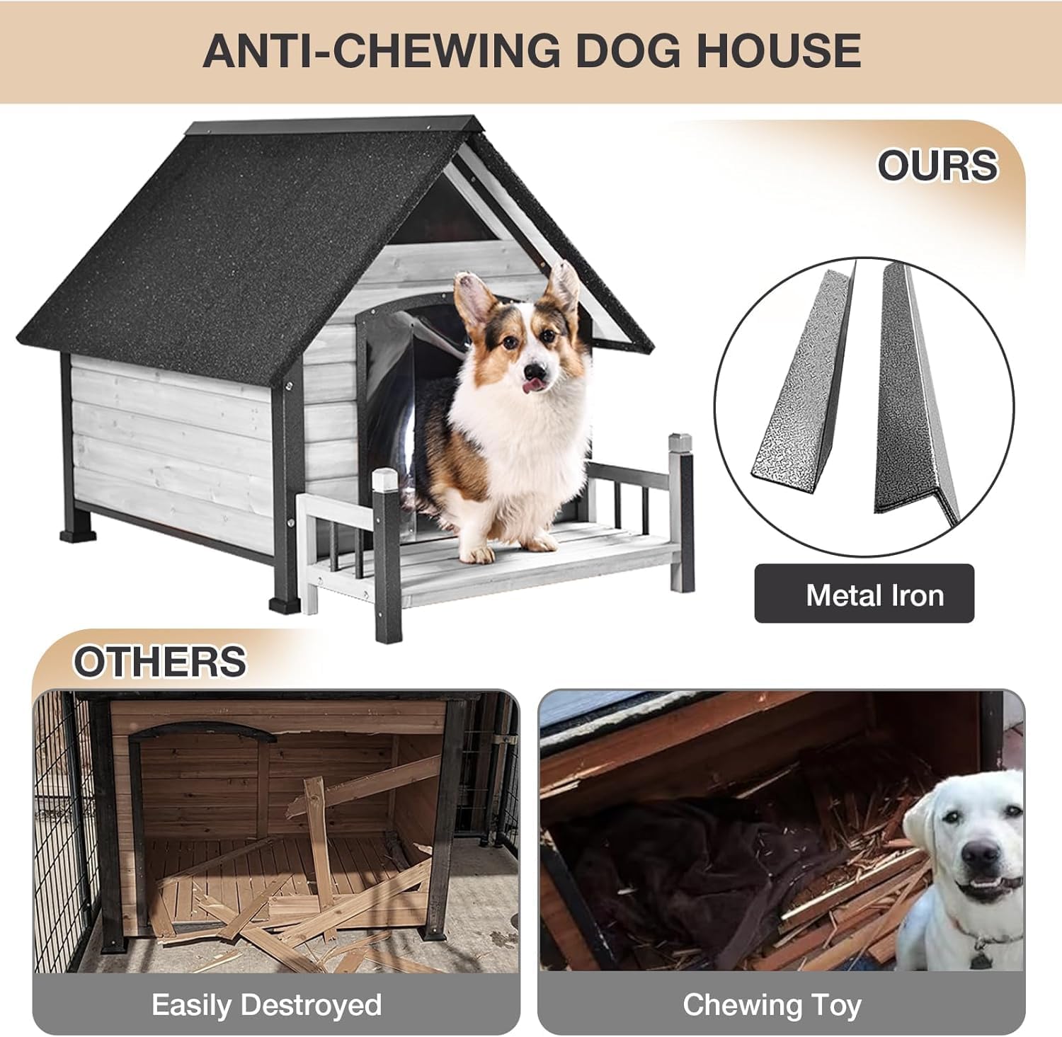 - WEATHERPROOF DESIGN FOR SAFETY: Equipped with an asphalt roof and water-resistant Plastic Feet Pad, our Dog House offers a raised floor for ultimate weatherproofing.Keep your pet stays dry and protected. It's a ideal choice for any outdoor space