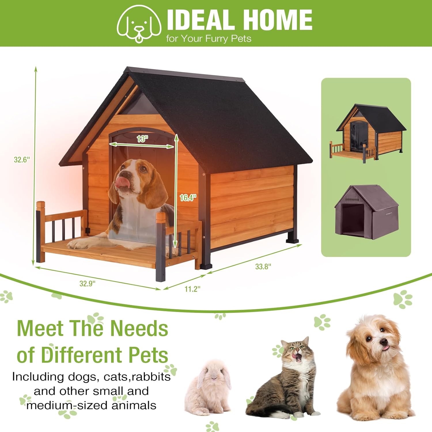 - SPACIOUS SPACE FOR MULTI BREEDS:Measuring 45in(L)Γ32.9in(W)Γ32.6in(H) with a roomy entrance of 16.4in(H)Γ14in(W), our Dog House is perfectly sized for small and medium dogs. Suitable for both indoor and outdoor use, it's the perfect Puppy Shelter for any family pet