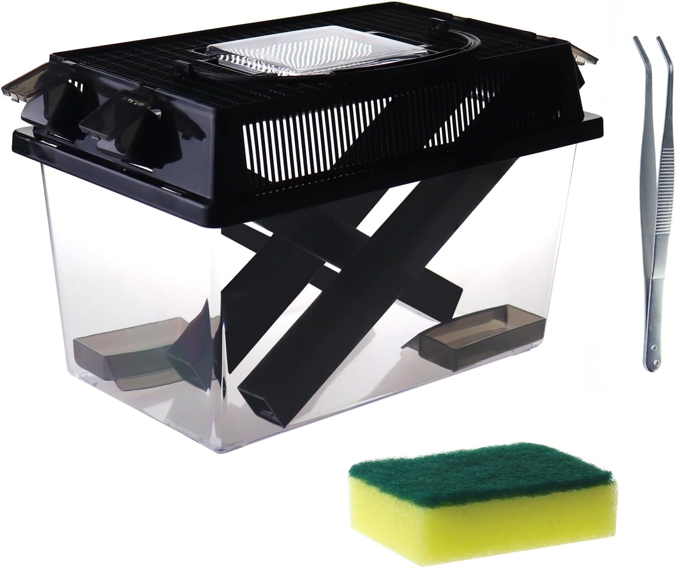 - 【Cricket Care Kit】Equipped with 4pcs dispenser tubes, 1pcs food dish, 1pcs water bowl, 1pcs insect tweezers and 1pcs sponge brush. This cricket keeper kit is specifically designed for feeding insects and mixing reptile feed. With a black hiding tube and a handheld design, it is easy to carry with going out.