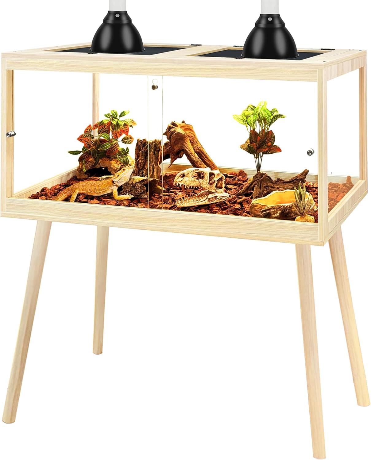 - 【Premium Wooden Reptile Habitat】Give your reptiles a safe and dependable home. Crafted from solid wood core with double sided water-repellent coating, this enclosure is built to last while maintaining a dry and stable environment. Specially designed for terrestrial reptiles (not for aquatic species), it provides a reliable space where your pet can thrive every day.