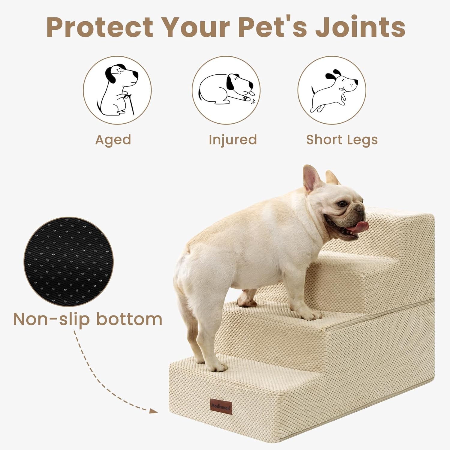 Dog Stairs for Bed 18.5" H, 4-Step Dog Steps for Small Dogs and Cats, Indoor Non-Slip Balanced Pet Stairs are Suitable for Puppy, Older Cat,Beige