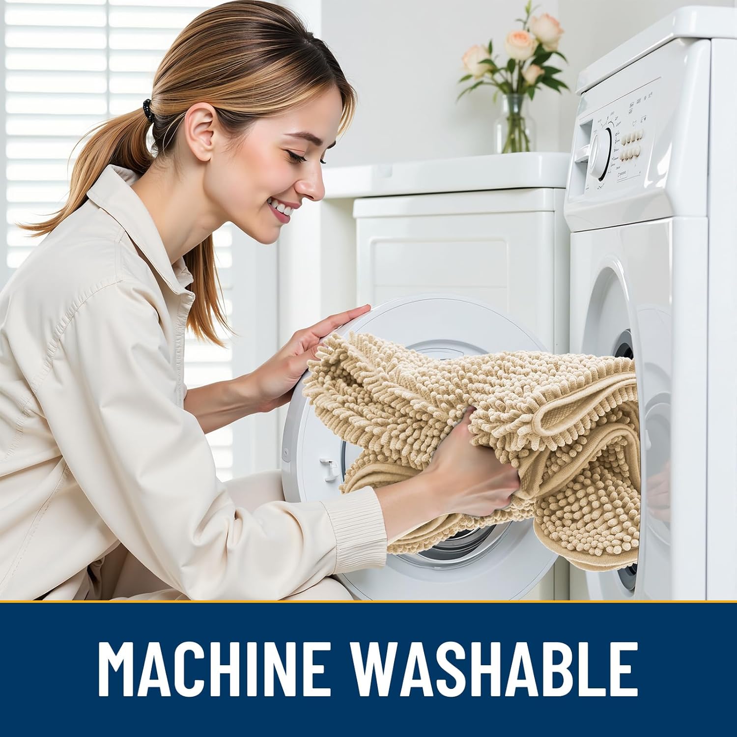 Smiry Dog Door Mat for Muddy Paws 40x24, Absorbs Moisture and Dirt Doormat, Non-Slip Washable Quick Dry Chenille Front Door Mat Indoor Entrance, Entryway Carpet for Inside Floor, Beige