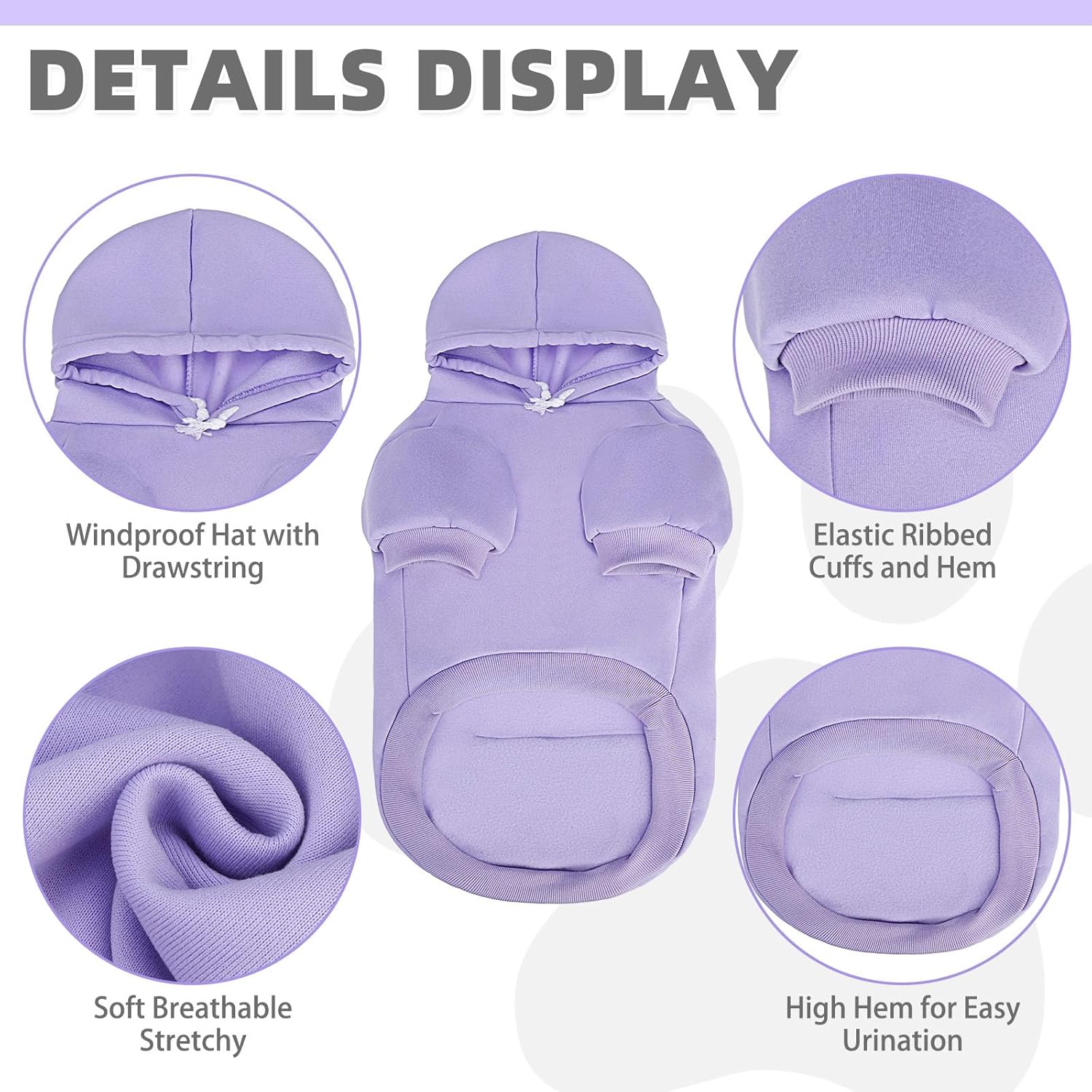 KOOLTAIL Basic Dog Hoodie - Soft & Warm Dog Hoodie Sweater with Leash Hole and Pocket, Pet Winter Coat, Cold Weather Clothes Sweatshirt for Small Medium Large Dogs Puppy Cat Boys Girls Lavender SM