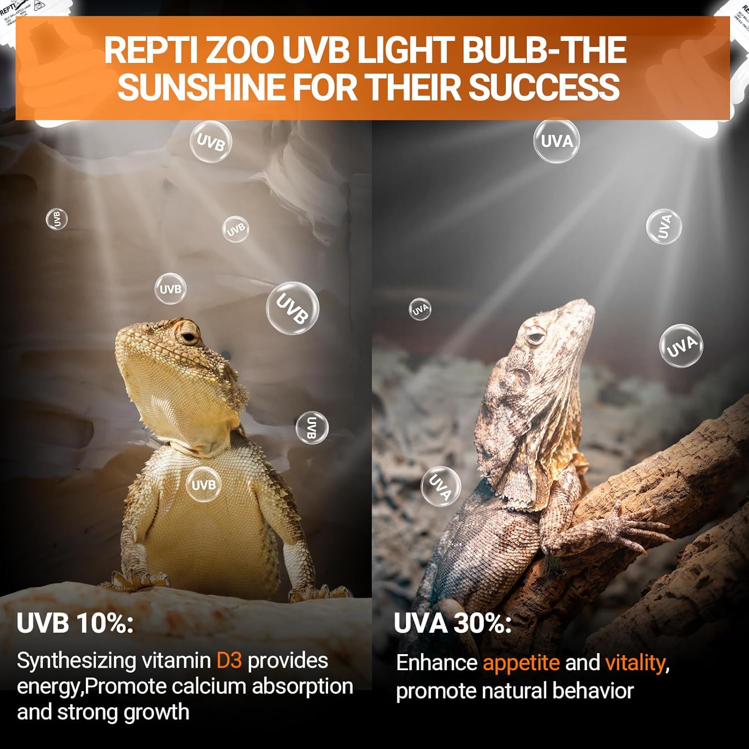 - Complete Dual-Pack Value for Continuous Care – REPTI ZOO delivers not one, but two high-performance 10.0 UVB Light for Reptiles in a single purchase. This bundle ensures you always have a backup ready, guaranteeing your tropical pets never miss a single day of essential UVB exposure. With an extended lifespan of up to 12000h, these bulbs drastically reduce the frequency of replacements, saving you time, worry, and money in the long run.