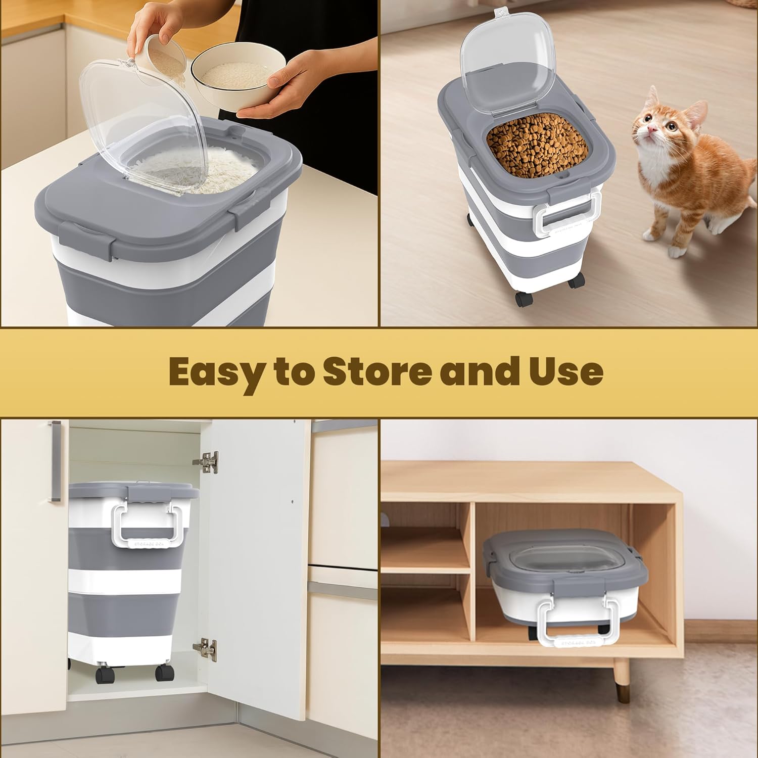 - Built-in Detachable Wheels-Handle:Our cat food storage container thoughtfully comes with 1 detachable handle and 4 detachable rolling wheels, making it a breeze to move from one place to another