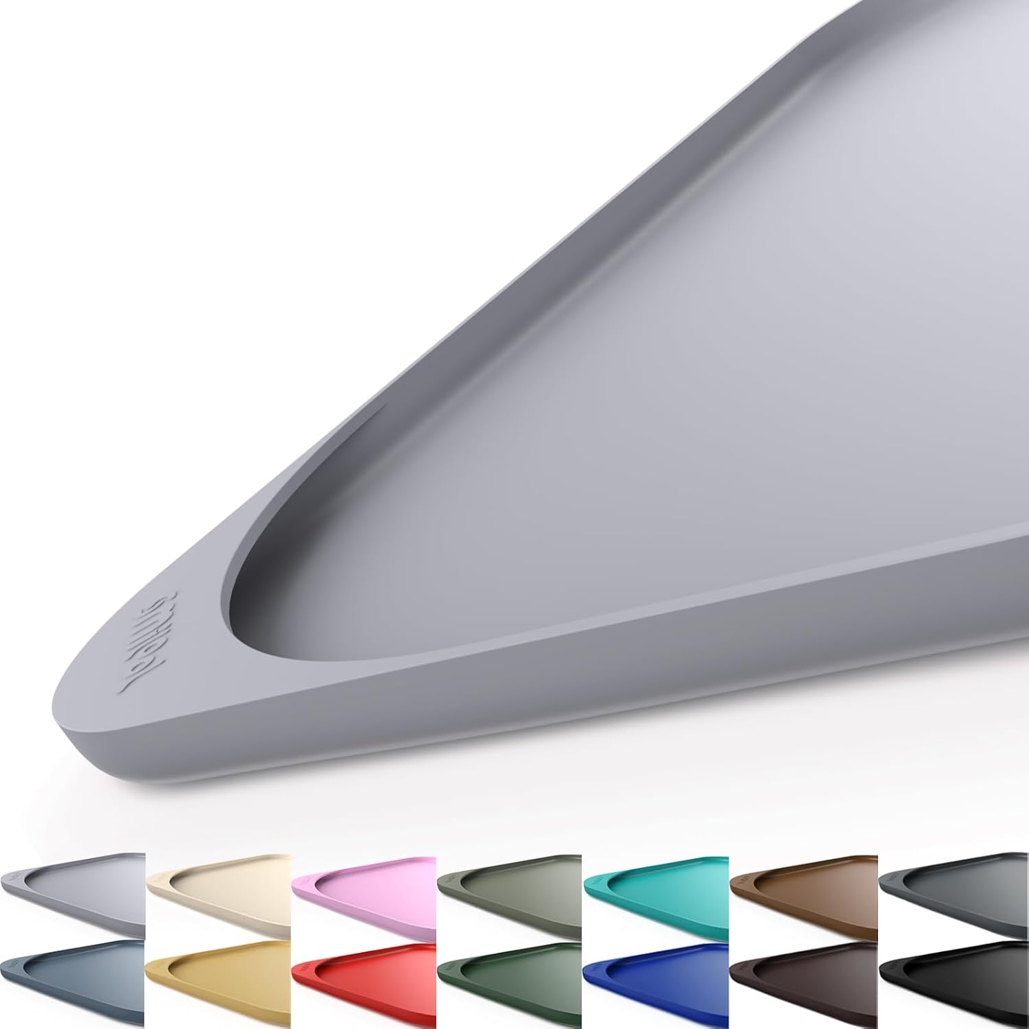 Silicone Pet Feeding Mat with Raised Edge & Residue Collection Pocket for Food and Water, Dog Bowl Mats, Cat Bowls Placemat with High Lip for Floor Waterproof, 19 x 12 x 0.7 Light Gray