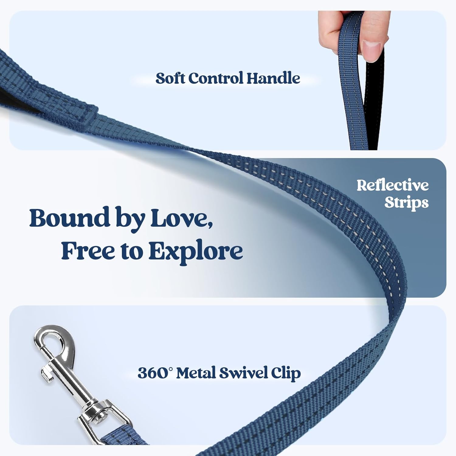 - Dog Harness with Leash Set: The color-matching harness and leash with reflective bands make it fashion and visible for pet outing. The leash is 5.12ft in length, with an anti-tangling clip and a palm-friendly handle