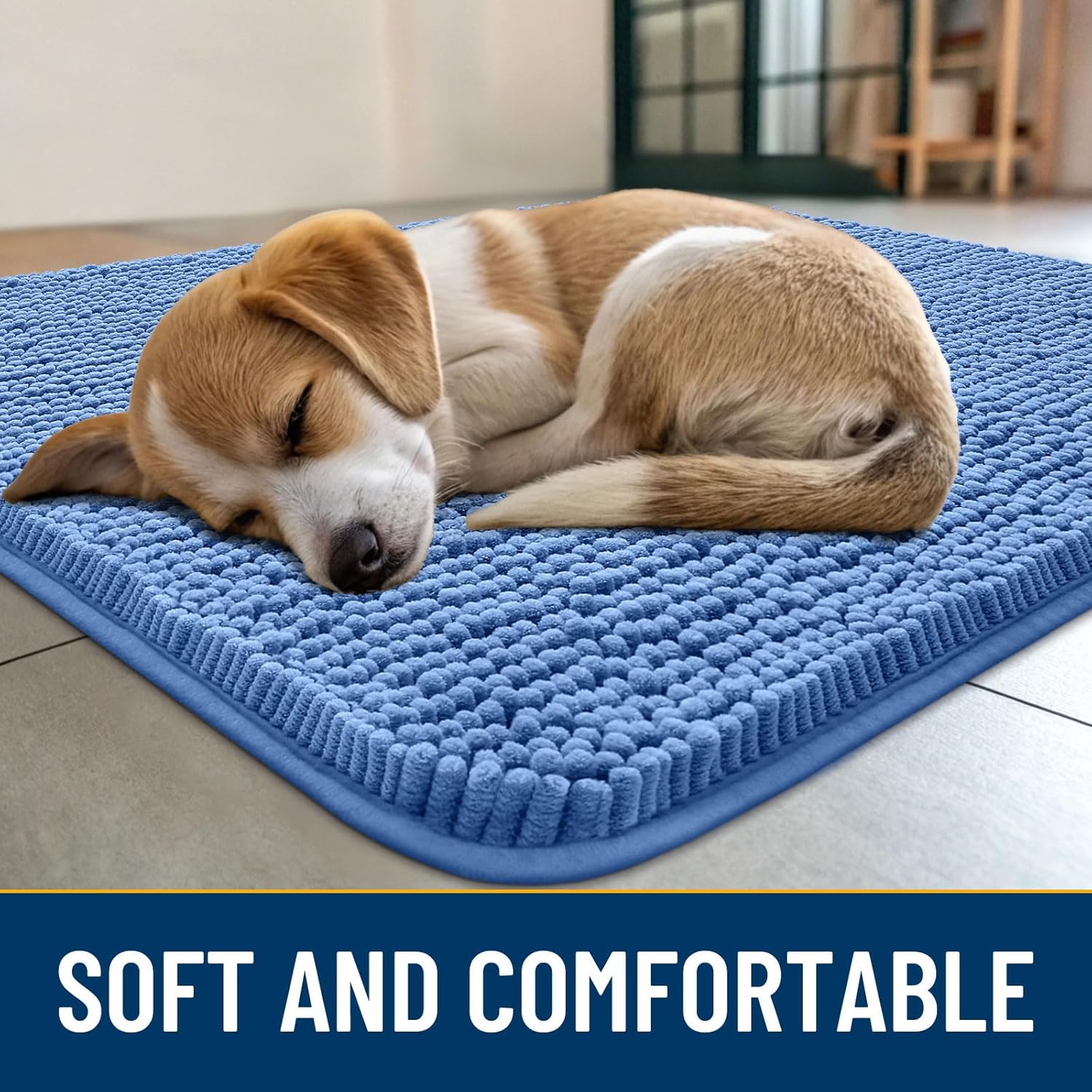 Smiry Dog Door Mat for Muddy Paws 24x16, Absorbs Moisture and Dirt Doormat, Non-Slip Washable Quick Dry Chenille Front Door Mat Indoor Entrance, Entryway Carpet for Inside Floor, Cornflower Blue