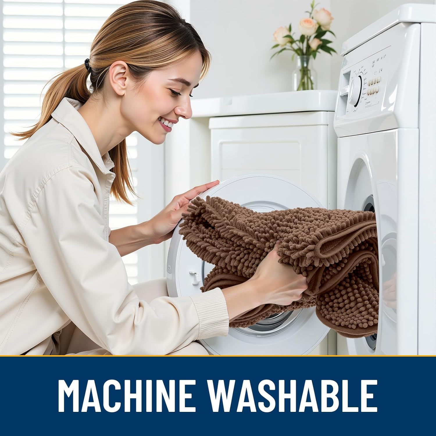 Smiry Dog Door Mat for Muddy Paws 30x20, Absorbs Moisture and Dirt Doormat, Non-Slip Washable Quick Dry Chenille Front Door Mat Indoor Entrance, Entryway Carpet for Inside Floor, Mocha