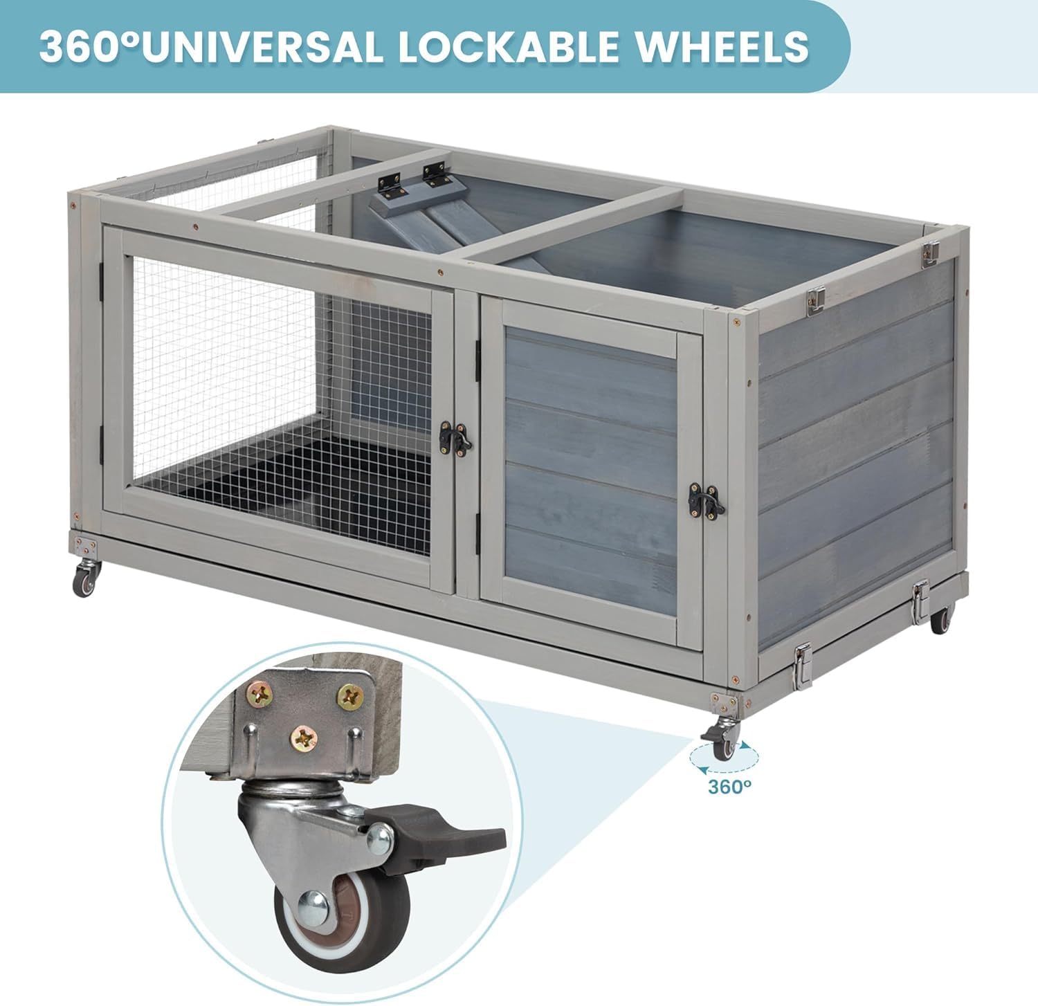 Weatherproof Wooden Rabbit Hutch for Indoor Outdoor Use, 2 Story Bunny Cage House with Wheels, Small Animal Shelter with Pull Out Tray, Non-Slip Ramp, Chicken Coop, Pet House Guinea Pigs Quail