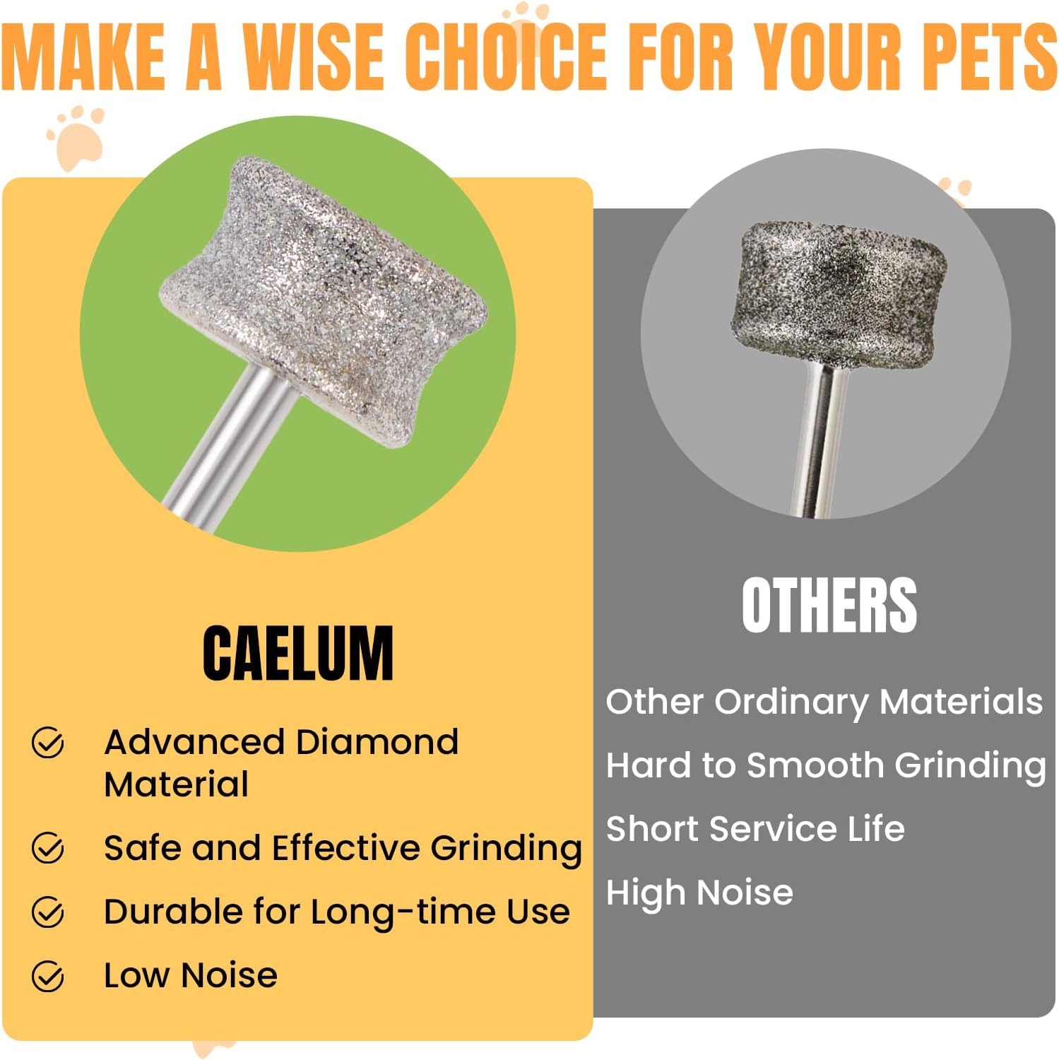 CAELUM Diamond-Coated Pet Nail Grinder Bit, 1/8” Shank for Dremel Nail Tools, Durable & Low-Noise Nail Trimmer for Dogs, Top & Side Grinding, Gentle, Precise Nail Grooming(80grit)