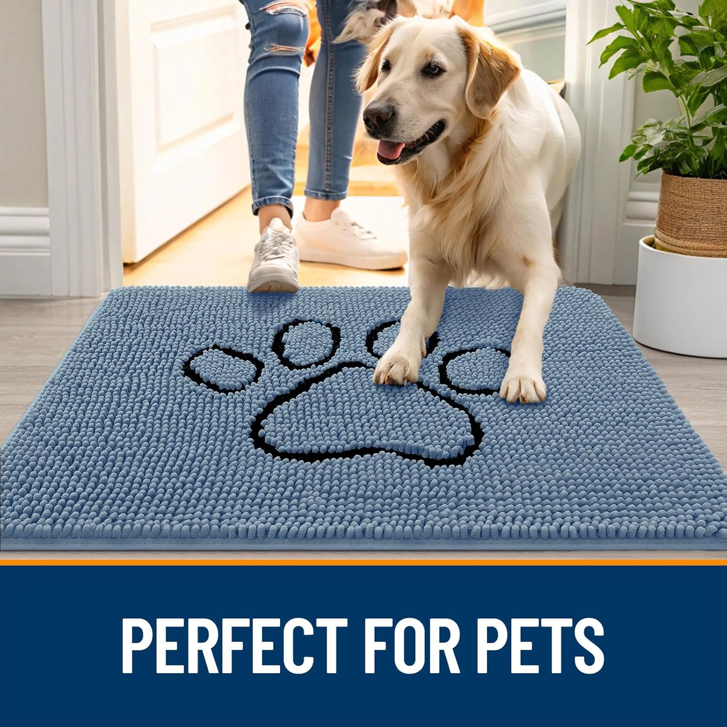- [ABSORBS MOISTURE AND DIRT] OLANLY indoor dog mat for muddy paws is crafted to efficiently remove dirt and swiftly absorb moisture. With our doormat, your shoes will be instantly clear of any water, dust, grit, muck, sand, sleet, grass, slush, rain, or snow upon entering the house. It's an excellent choice for use as an entryway door mat, a welcoming door mat, or a dirt-trapping mat.