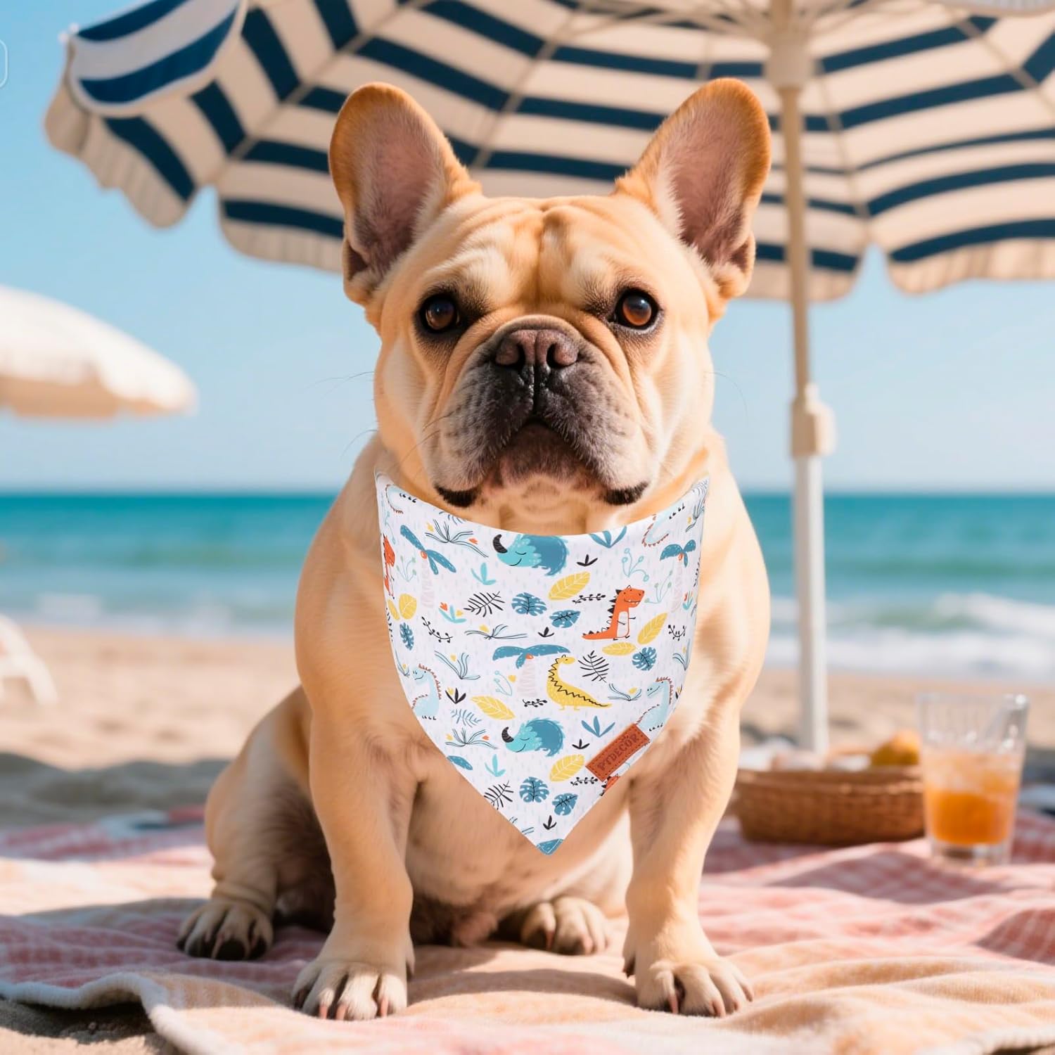 PTDECOR Dinosaurs Dog Bandana, Dinosaurs Design Reversible Pet Scarf Bib, Premium Durable Fabric, Adjustable White Green Bandanas for Medium Large Dogs Pets (Large)