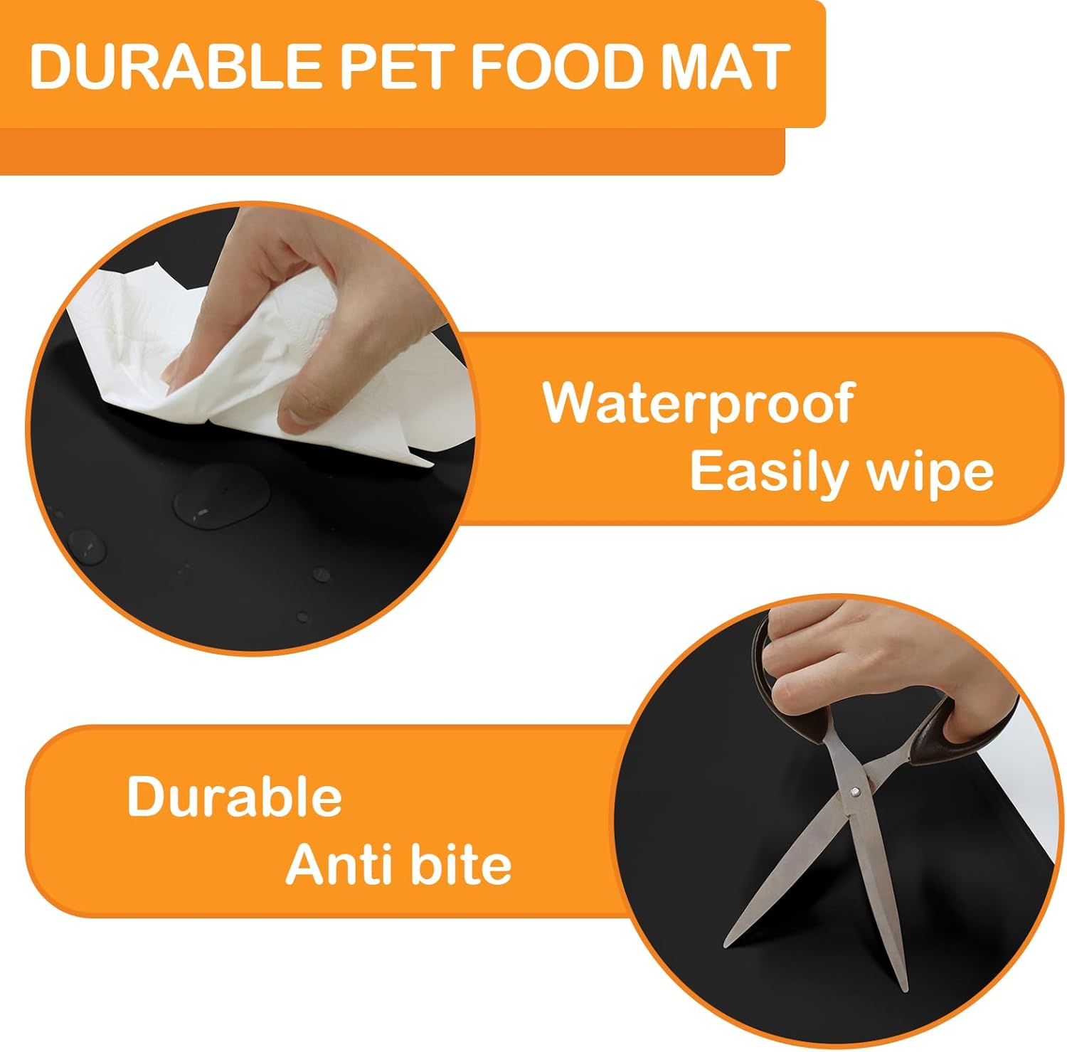 - 【Dog Bowl Mat GREAT QUALITY】This pet food bowl mat is made of 100% silicone, waterproof and non-slip.With raised edges, can protect water and food from overflowing, keeping your floor tidy.